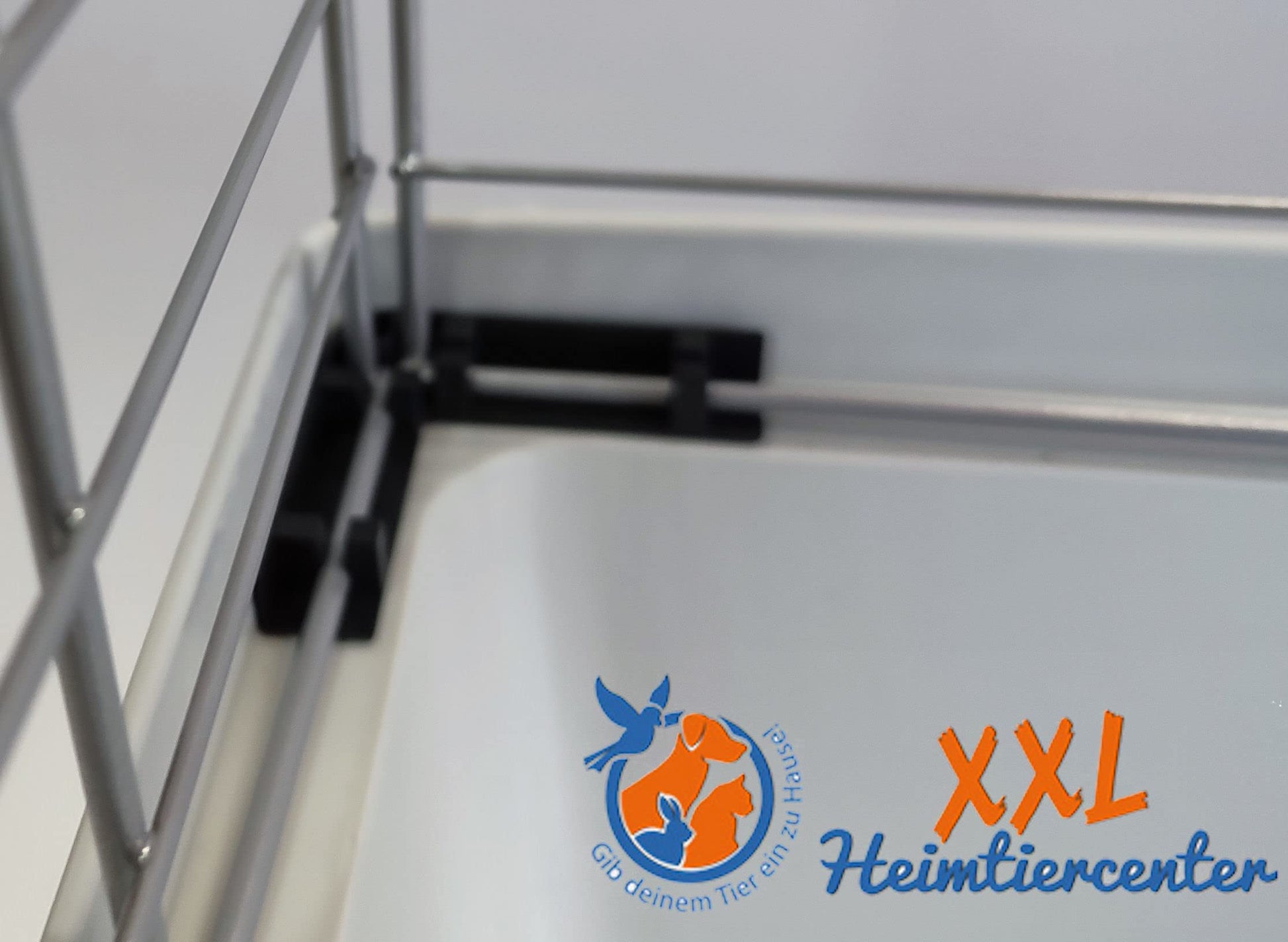 ["New model with 2 large doors: top 24.4x13.8 inches, front 8.7x6.7 inches and foldable grid", "SPECIES-APPROPRIATE HOUSING: Whether for rabbits or guinea pigs, with a size of 46.9x23.2x18.1 inches, rodents have plenty of space to dig and play.", "- sturdy tray 6.3 inches high - grid spacing of 1.06 inches - easy to assemble - very good craftsmanship - easy to clean - BONUS: hay rack", "Flexible: In the summer, you can use the grid as a run enclosure on the lawn", "Expandable: Fold one side of the grid completely upwards, and you can attach another cage or build a run on it. This doubles the floor space for your pet"]