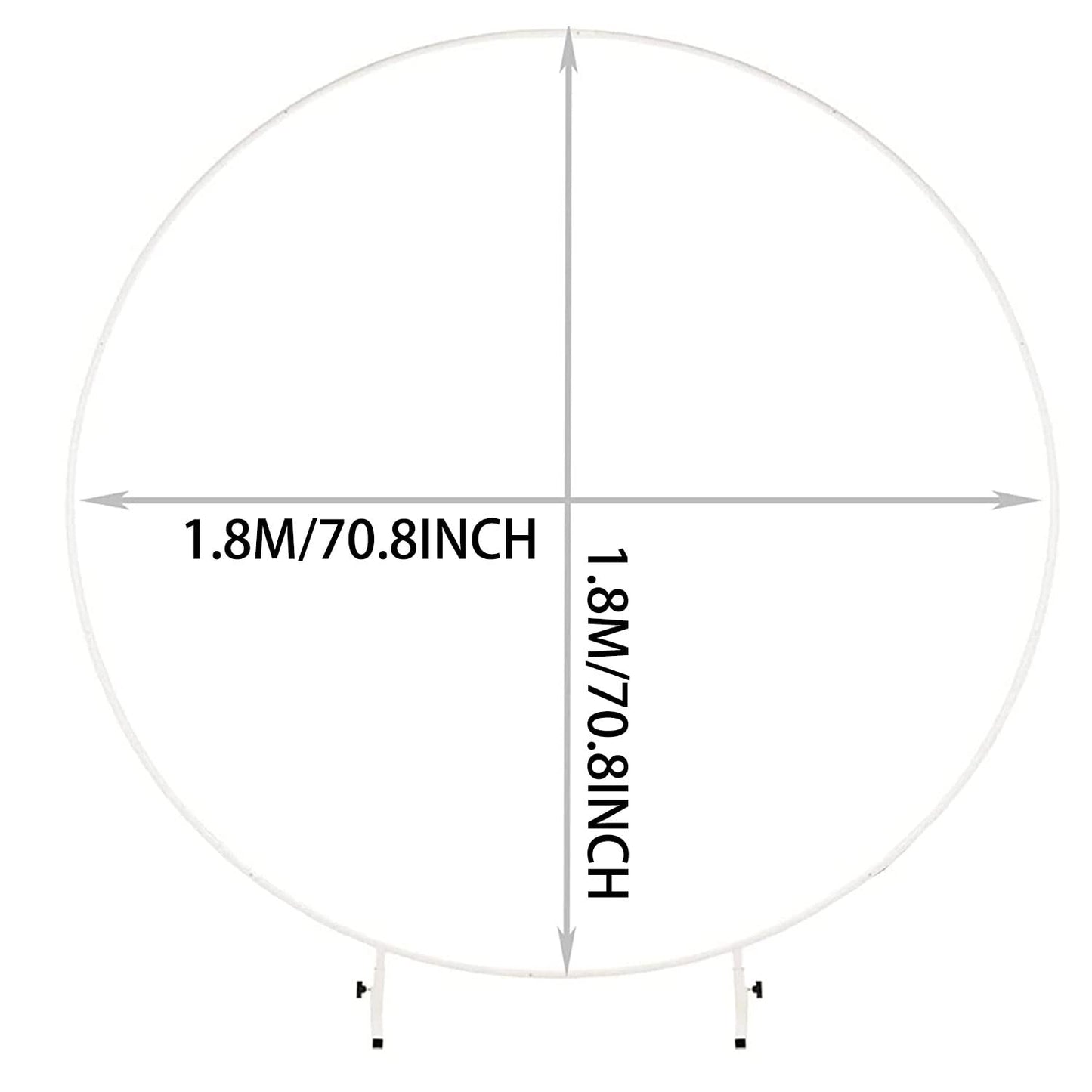 ["To enhance the round background decoration for a better effect, we have updated the product and added the push adjustment buckle setting, which is more compact and does not easily fall off. High-quality material: Round metal balloon arch, dimensions: 1.8 x 1.8m, durable, corrosion-resistant, reusable many times, environmentally friendly and hygienic, takes up no space.","Includes: 9 metal tubes, 2 metal stands, 2 metal splice bases. Note: The reinforcement rod is not a closed circle after shaping, it needs to be pressed into a circle to make the design more stable than the arch.","Fashionable party decorations: Balloon arch stand decoration is one of the most popular party decorations today. You can decorate the arch with balloons, flowers, artificial plants, LED lights, or other elements to create a personalized arch backdrop. It can be used indoors or outdoors.","Various occasions: Whether it's a birthday party, wedding, bachelorette party, baby shower, graduation party, dessert table, Christmas decoration, New Year decoration. You can reuse it at different occasions and create unforgettable memories with your loved ones.","Customer service: This will be a worry-free shopping experience. If the product you receive has a quality issue, please contact us and we will provide you with a satisfactory response within 24 hours. Please watch the video installation guide before making the installation."]