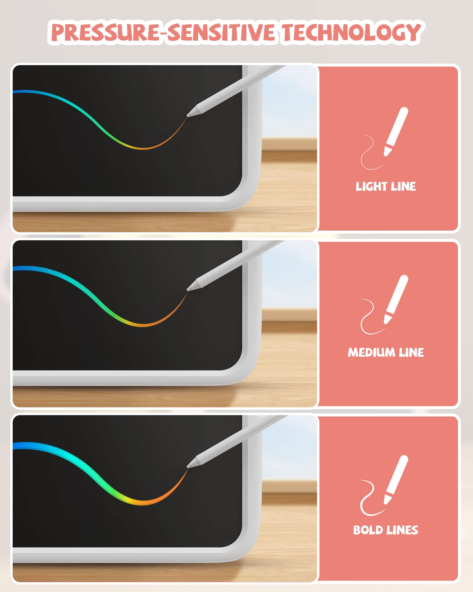 ["Advanced colorful LCD writing board: This educational learning toy for children uses a new generation of display and pressure-sensitive technologies that replace the traditional writing board; no dust and environmental protection, no worry about the atomic problem, so it can keep children active at work, let children play with their imagination and creativity, develop your child's brain and let children learn in entertainment", "Eye protection and no mess at home: This children's toy can be reused at least 100,000 times. With this LCD writing and drawing tablet, you can save 50,000 sheets of A4 paper and avoid stains on walls and carpets. It is radiation-free and glare-free, reducing the risk of eye strain in children, protecting children's eyes, and allowing children aged 3, 4, 5, 6, 7, and 8 to play with their imagination and creativity.", "✅ Multi-use & Easy to Use: This LCD writing board can be used for drawing, doodling, writing, counting, leaving messages, notes, and business spaces. You can press the EASE button once to clean the entire content and pattern of the toy. The lock/release button of the learning toy can prevent the screen from being accidentally erased. It creates lines of different thicknesses depending on how hard you press.", "✈️ Lightweight and portable: With a 10-inch screen, it weighs only 0.45 pounds, so it can be inserted into a bag, briefcase, or purse. You can take it anywhere, it can be an essential travel accessory for long trips and road trips, children can write down everything and save all ideas when they have a special fantasy at any time.", "🎁 Great gift idea: This multifunctional LCD writing tablet is a perfect gift for children of all ages, from preschoolers to 3, 4, 5, 6, 7, and 8-year-old girls and boys. It can also be a unique parent-child toy gift for children on Valentine's Day, Children's Day, Bake School Day, Birthday, Easter, Thanksgiving, Christmas, and special occasions."]