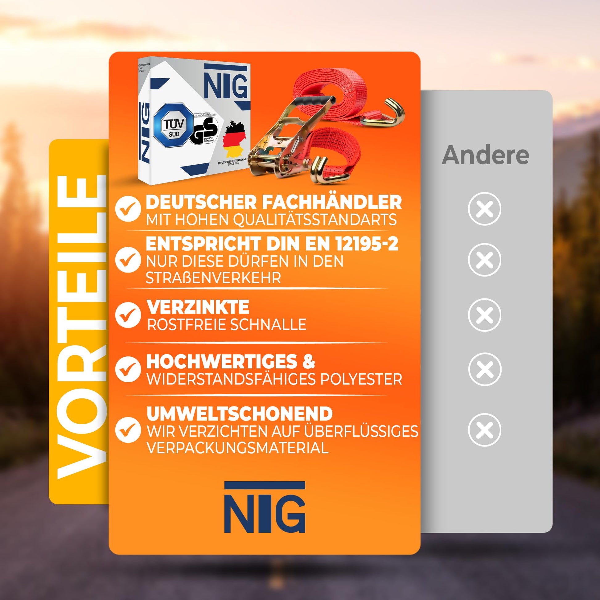 "\"WITH CONFIDENCE: From material selection to final inspection. Nothing is left to chance, so you always receive reliable tie-down straps.\"