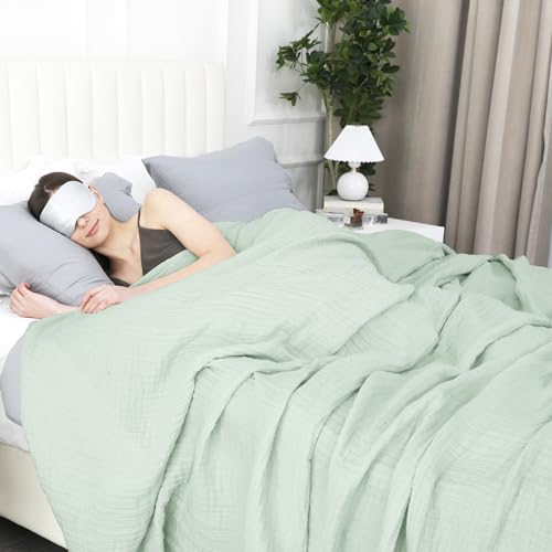100% cotton muslin blanket 130x150cm, 4-layer soft skin-friendly & breathable bedspread, year-round comfort sage green sofa throw couch cover for bed sofa, Matcha green