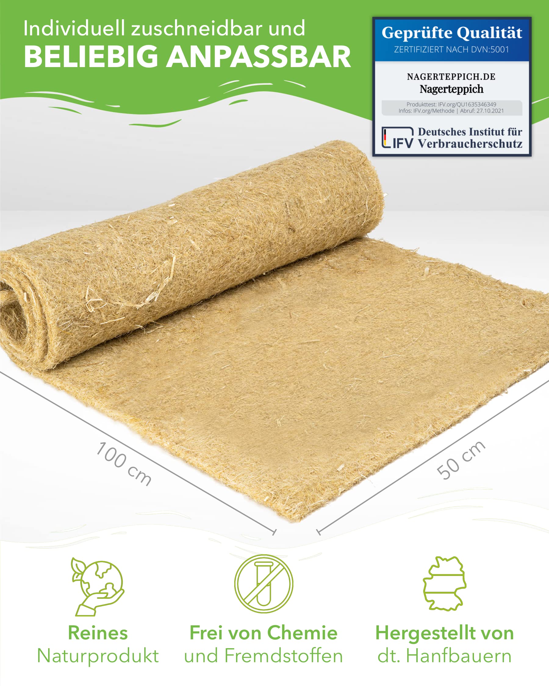 ["MADE IN GERMANY - Our rodent mat is made from 100% high quality hemp from German hemp farmers. The soft and natural fibers make it ideal as a cage liner",
