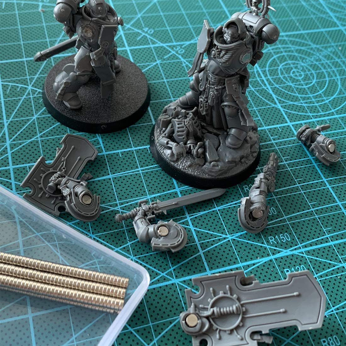 "3 sizes combo tiny magnets: 3 x 1 mm and 4 x 2 mm are perfect for limbs of most troop models, 5 x 2 mm are perfect for mini bases. Also great for paper crafting like scrapbooking. Note: These magnets are extremely small, so make sure they fit your projects before buying."