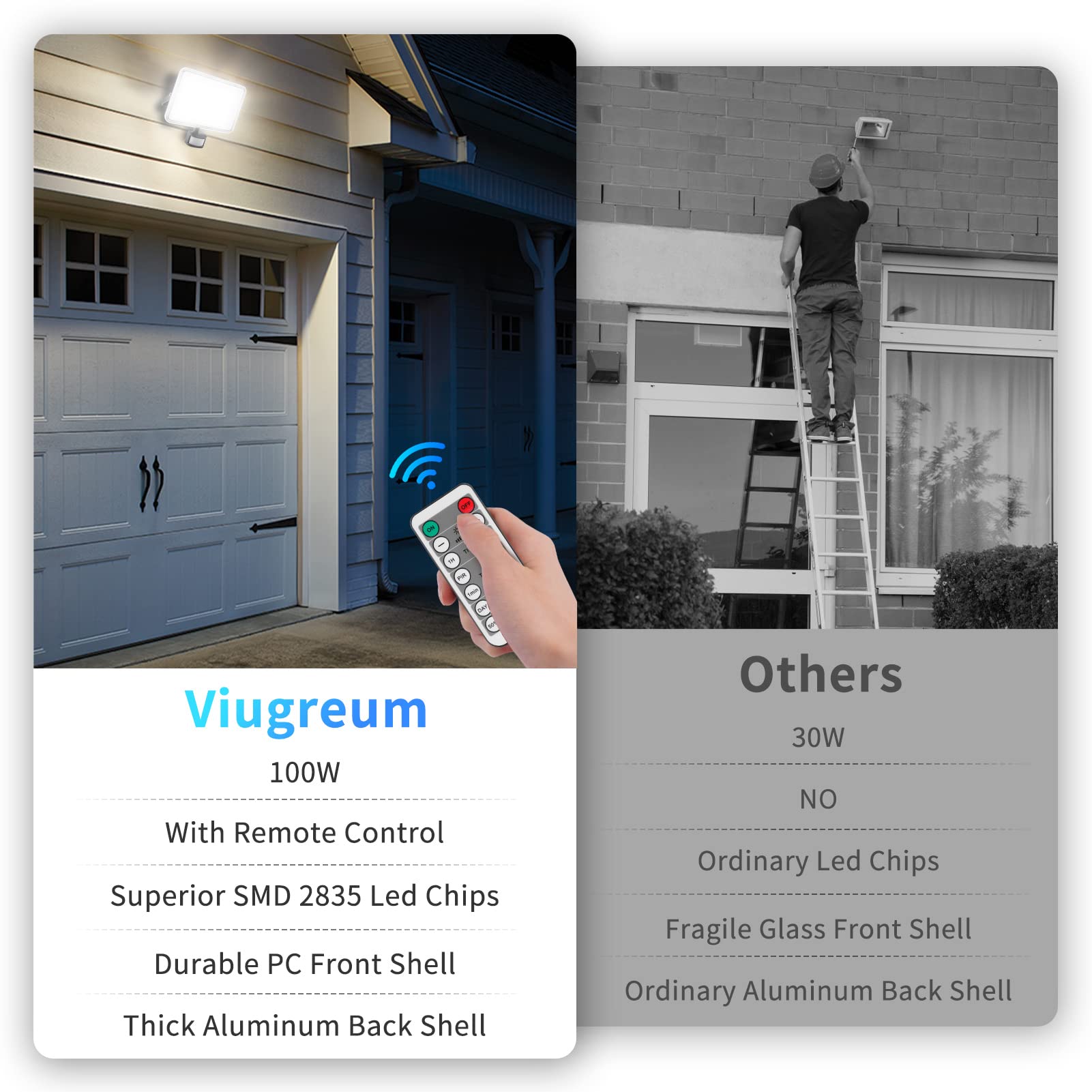 ["【With Remote Control】New updated 100W outdoor light with motion sensor and remote control. You can easily turn the light on and off, adjust the brightness, configure the sensor working mode, sensitivity, and time settings. With memory function - very intelligent. This effectively avoids the hassle of climbing up after installation to adjust the sensor mode.","【PIR Motion Sensor + Constant Light Mode】This LED floodlight with motion sensor offers a PIR motion sensor mode and a PIR mode with 3 delay settings (10 seconds / 1 minute / 5 minutes). Two sensor modes (day/night) and two sensitivity settings (50% / 100%) are available. The constant light mode requires a re-click on the \"ON\" button. Perfect for garden, backyard, garage, and entrance.","【Adjustable Brightness + Timer Function】The brightness of this 100W outdoor LED floodlight can be adjusted between 10% and 100%. The maximum brightness is up to 8000 lumens. Adjust the brightness according to your needs to save energy. The secondary light distribution with PC lens mask provides a good lighting effect. The environmentally friendly material allows you to set it to automatically turn off after 1 or 3 hours. Perfect for outdoor use","【IP67 Waterproof】The IP67 waterproof outdoor floodlight with motion sensor can be used in various environments, indoors and outdoors. It can withstand rain, hail, or snow. The LED outdoor floodlight with motion sensor has an adjustable range of 150° and a beam angle of 120°. The sensor can be rotated horizontally by 180° and vertically by 90° to cover a large area.","【Good Heat Dissipation】The die-cast aluminum housing and ultra-thin profile design with more heat dissipation ribs provide efficient heat dissipation. The easy installation of lamps and lanterns and the adjustable bracket by 180 degrees allow mounting on ceilings, walls, floors, and other places. The LED outdoor floodlight with motion sensor and PIR can be flexibly installed."]