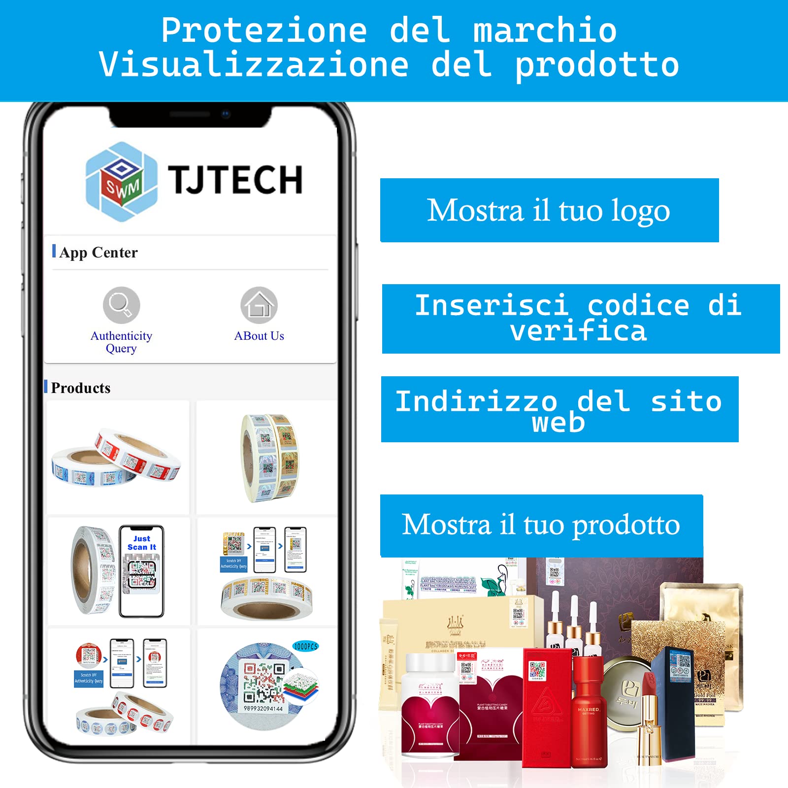 "✔️ 【Free Backend System】- 3 great features on the backend system: brand information, authenticity checks, product display. After scanning, the consumer can use the unique serial number to verify if the product is genuine. And clicking on the product can link to your website and increase your sales.",