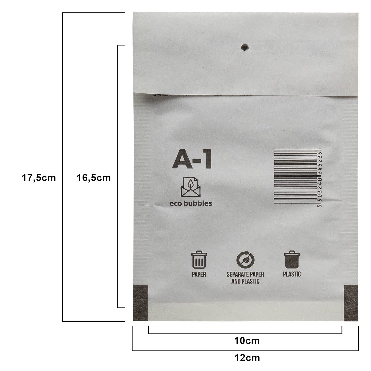 "Air bubble mailer size A/1 A1 A 1 - Inside dimensions: 100 x 165 mm / Outside dimensions: 120 x 175 mm - DIN A6, with water-resistant coating and secure self-adhesive closure with removable adhesive strips, punched closure flap for staples, with resealable adhesive closure. Suitable for letter mailings, book mailings, merchandise shipments, info mail, maxiletter, or as an alternative for parcel shipping instead of cardboard boxes. We have air bubble mailers in all sizes and colors brown and white: A/1 B/2 C/3 D/4 E/5 F/6 G/7 H/8 I/9 K/10 and CD. Air bubble mailers, air bubble envelope, air cushioned mailer, air cushioned envelopes, sample clip bags, sample clip envelopes, envelopes, envelopes."