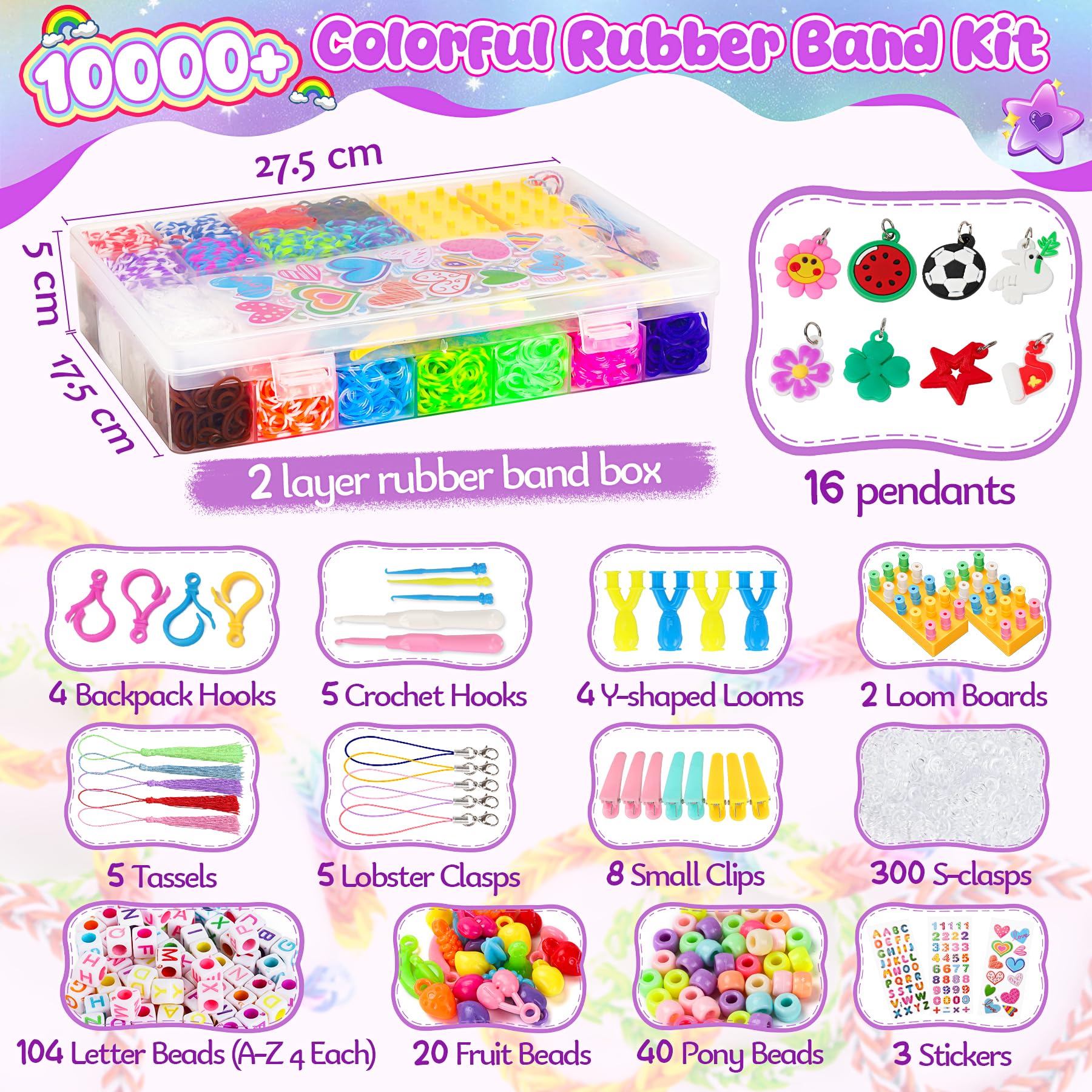 10000+ loom bands set, 2 layer colorful rubber bands kit for bracelets, DIY elastic loom bands kids bracelet making with beads hook charms storage box for beginner boys girls gift