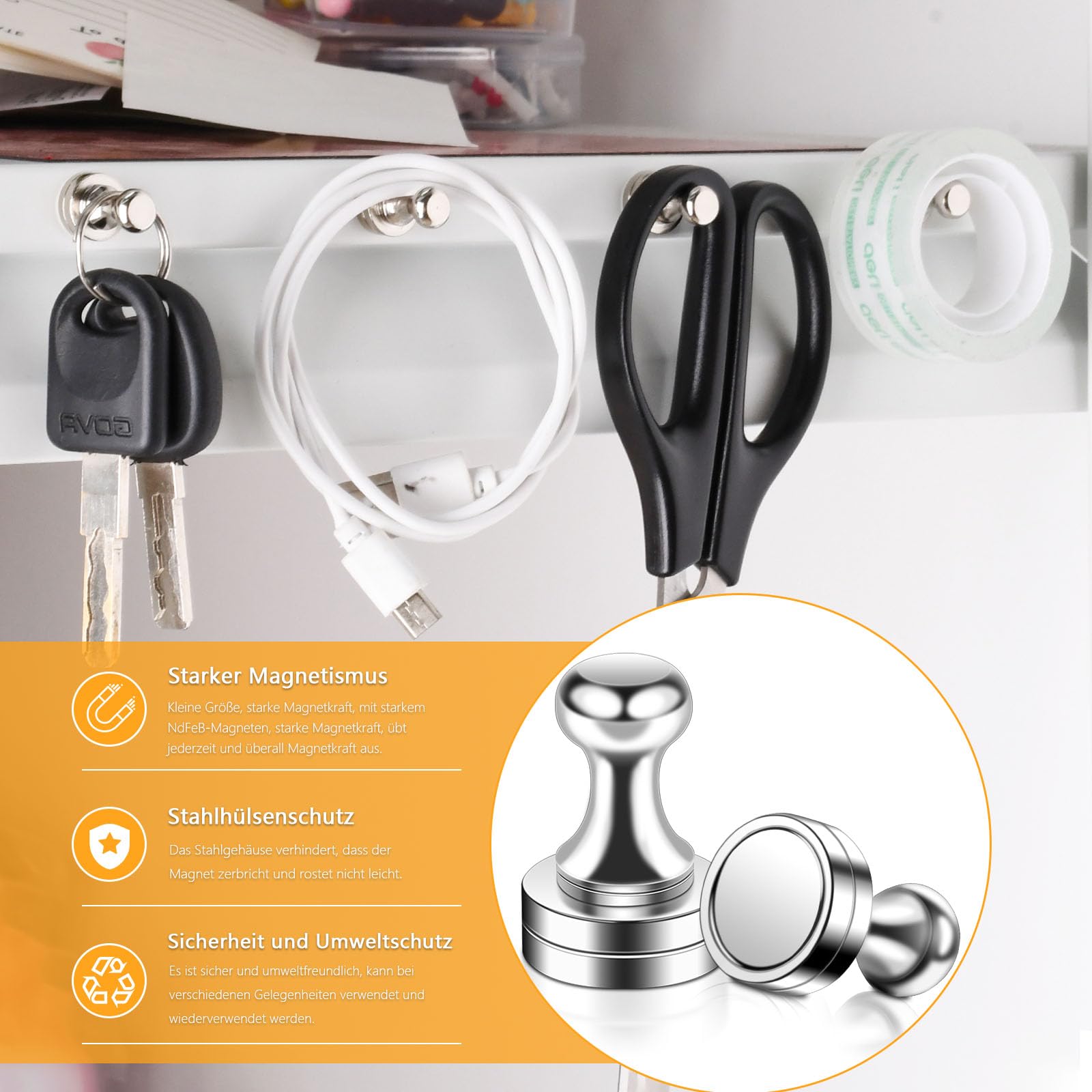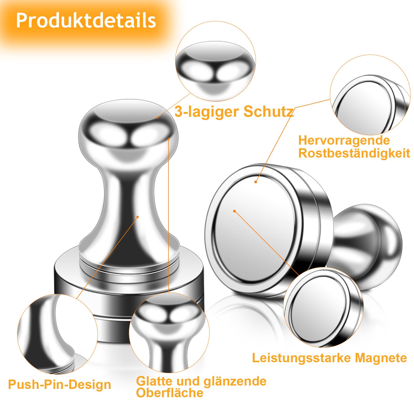 ["High-Quality Material"] The strong magnets are coated with 3 layers of Ni+Cu+Ni rare earth magnets to protect them from rust and corrosion and avoid surface damage. N52 Neodymium Magnet push pins are made of durable neodymium magnet material for long-lasting use and are shatterproof.