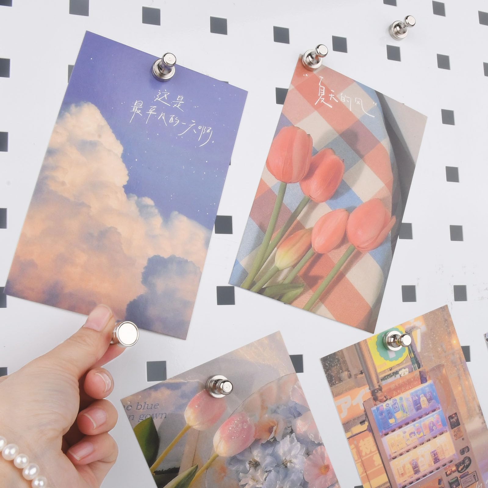 ["Multipurpose Magnets"] Strong whiteboard magnets are perfect for printer paper, notes, photos, posters, and cards on whiteboards, refrigerators, hanging pictures, magnetic cards, bulletin boards, lockers, calendars, filing cabinets, and other magnetic surfaces. Pushpin-shaped magnets have many uses.