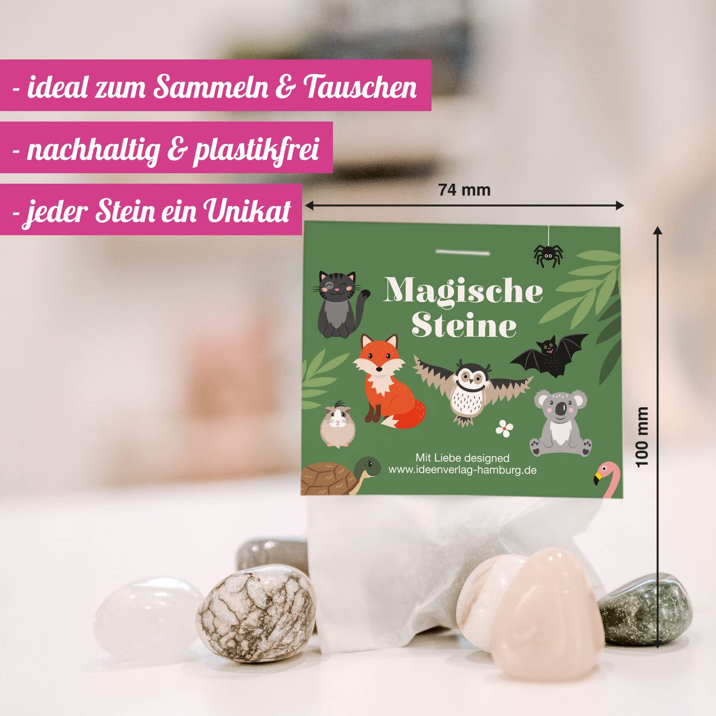 ["π¦ Contents: 10x \"Magic Stones\" Lucky Stones + 1x Stone Meaning Card, individually and 100% plastic-free packaged.","βοΈ 1 lucky stone per pouch, diameter between 0.79 - 1.18 inches (Natural product! Size, weight, and color may vary! Collectible stone - Not a toy!)","π€β€οΈπ Lovingly handmade β responsibly produced in local workshops for disabled people. Paper β Design β Packaging: All Made in Germany.","β»οΈ Sustainable, climate-neutral printing on FSC-recycled paper β designed with love by Ideenverlag HAMBURG.","π¦ Original, sustainable, and meaningful: Our useful giveaways for forest animal party favors - as giveaways forest animal kids birthday party favors Magical animals kids birthday party favors for forest animal party kid birthday party guest gift kids lucky charm favor birthday party favor kids birthday gift for kids magic stones advent calendar fill for kids forest animal birthday party favors for kids magical animals birthday party favors for kids","βοΈ Perfect as a good luck charm New Year's forest animal party favor kids birthday 8 years forest animal party kids birthday guest gifts kids birthday forest animal party favors kids party forest animals give aways kids birthday girls magical animals give aways kids birthday girls forest animals party decoration kids birthday favor bags forest animal party favors kids birthday boys party favors kids birthday forest animal party favors kids birthday kids birthday magical animals party favors"]