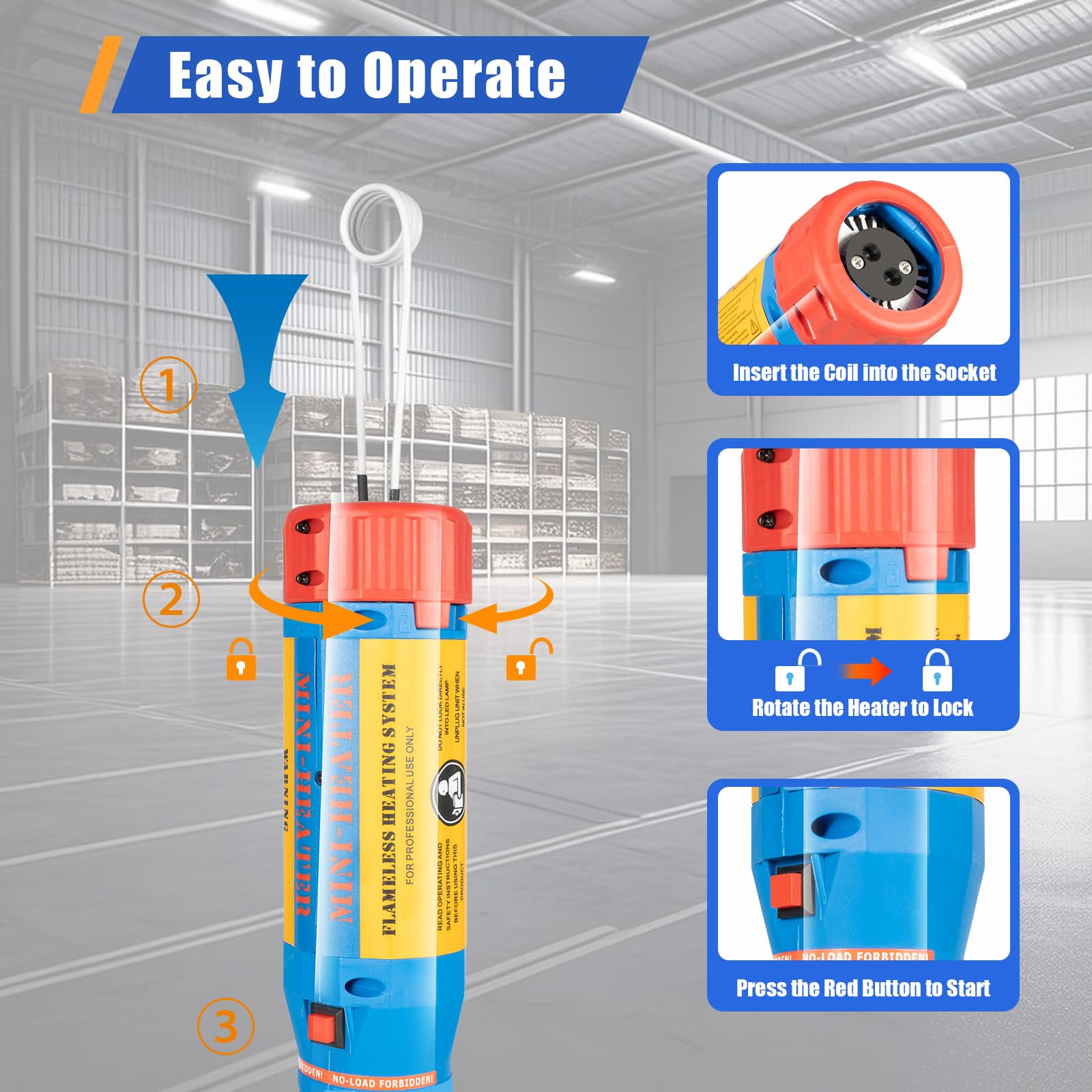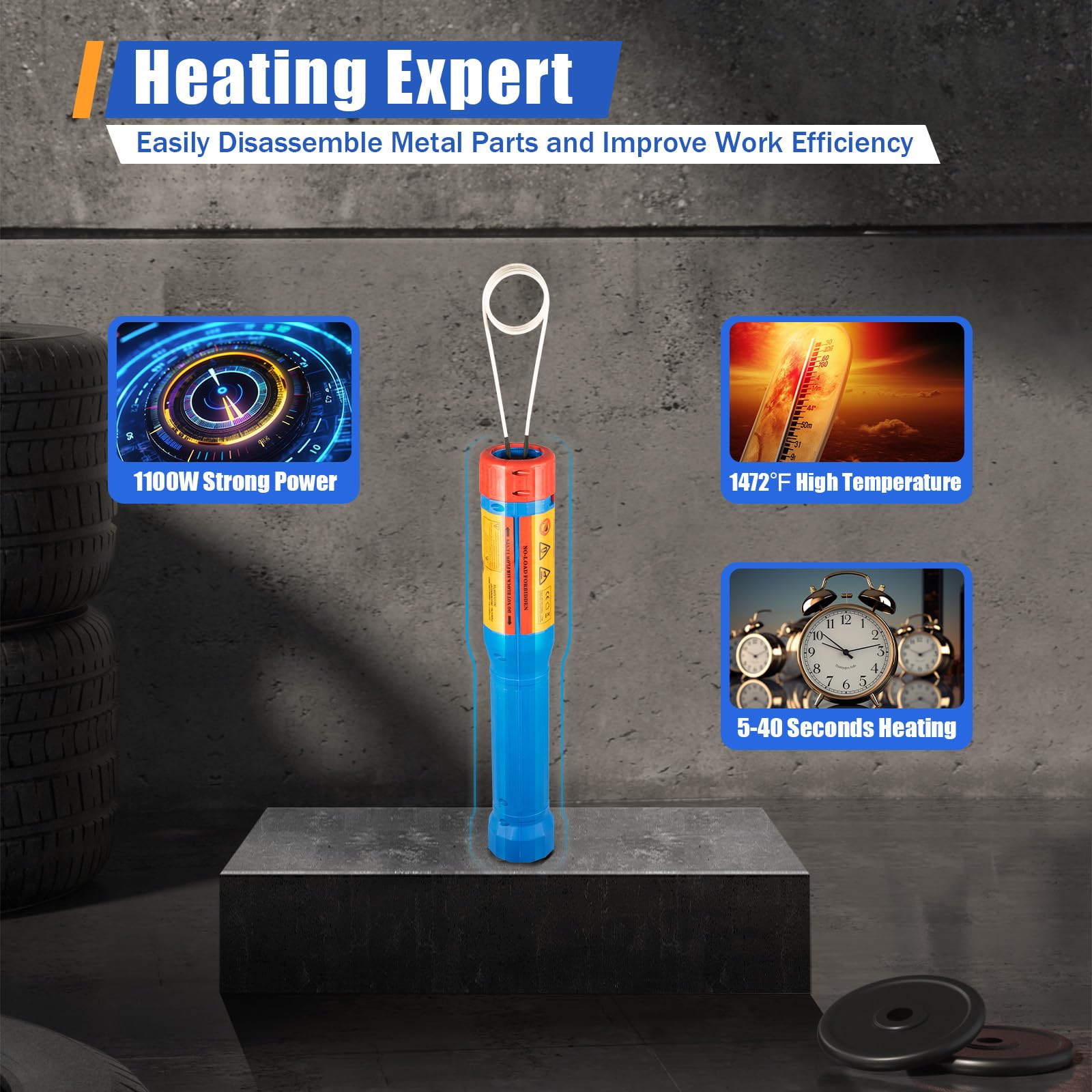 "Electromagnetic Induction/Highly Efficient: It has a high power of 1100W and can heat up to 800℃/1472℉ in 5-40 seconds, making your work more efficient. The working principle of this product is electromagnetic induction. It magnetizes materials within the coil's working area, heating and expanding them. You can then easily and quickly remove them.",