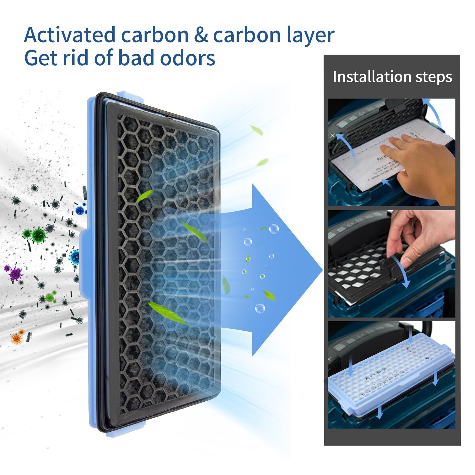 ["【Compatibility】The dust bag is a perfect replacement for GN vacuum cleaners and is suitable for Complete C2, Complete C3, S400i-S456i, S600-S658, S800-S858, S2000-S2999, S5000-S5999, S8000-S8999, S227/S240, S270/S280, S400, S2000, S5000.","【HEPA Filter】High-performance filter with additional activated carbon for more efficient filtering, reducing the number of bacteria and viruses in the air. It can filter more than 99.95% of fine dust particles under 1 micron (0.001 mm) and not only filters bacteria, pollen, pet hair, etc., but also absorbs various odors, achieving better cleaning purposes and is very suitable for allergy sufferers.","【High-quality Vacuum Bags】GN dust bags are made of 5-layer microfiber material, tear-resistant, and have stronger filtration, effectively blocking more than 99.9% of dust, 0.3-micron particles, and other allergens. The plastic cover with rubber seal has a self-locking seal and can be installed securely and firmly in the vacuum cleaner, keeping the dust safely in the filter bag.","【Easy to Use】Simply remove the old bag and insert the new one. Use the flip seal at the suction opening to securely seal the dust bag when removing it. No direct contact with dust, minimizing mess or inconvenience. It is recommended to regularly replace the filter bag to maintain the vacuum cleaner's performance and extend its lifespan.","【Package Includes】12 GN vacuum cleaner bags + 3 HEPA filters + 6 exhaust filters."]