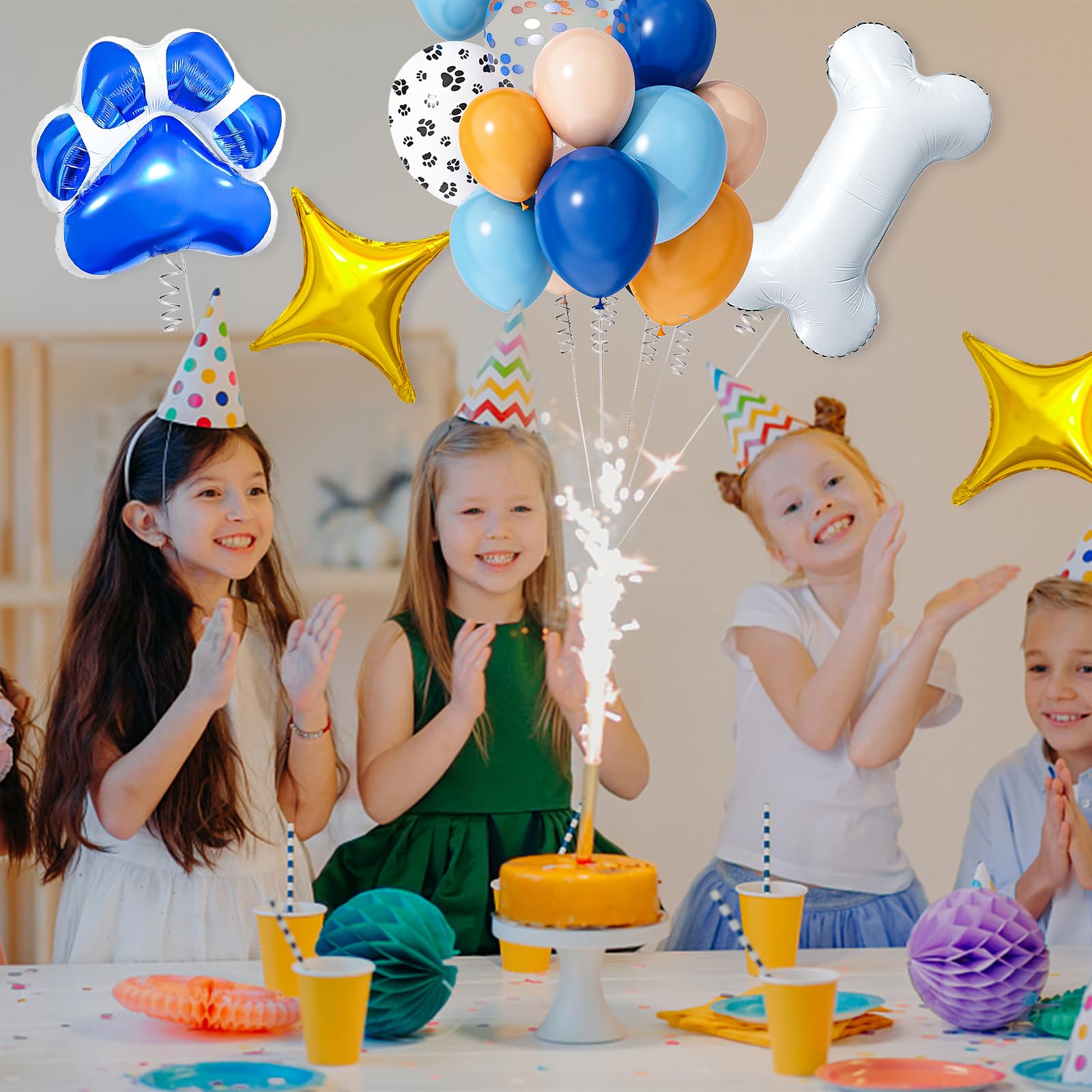 124 Piece Dog Paw Balloon Garland Blue Balloons Dog Foil Balloon Printed Boy Girl Birthday Decor Blue Orange Balloons Dog Theme Kids Birthday Boy Girl Baby Showers