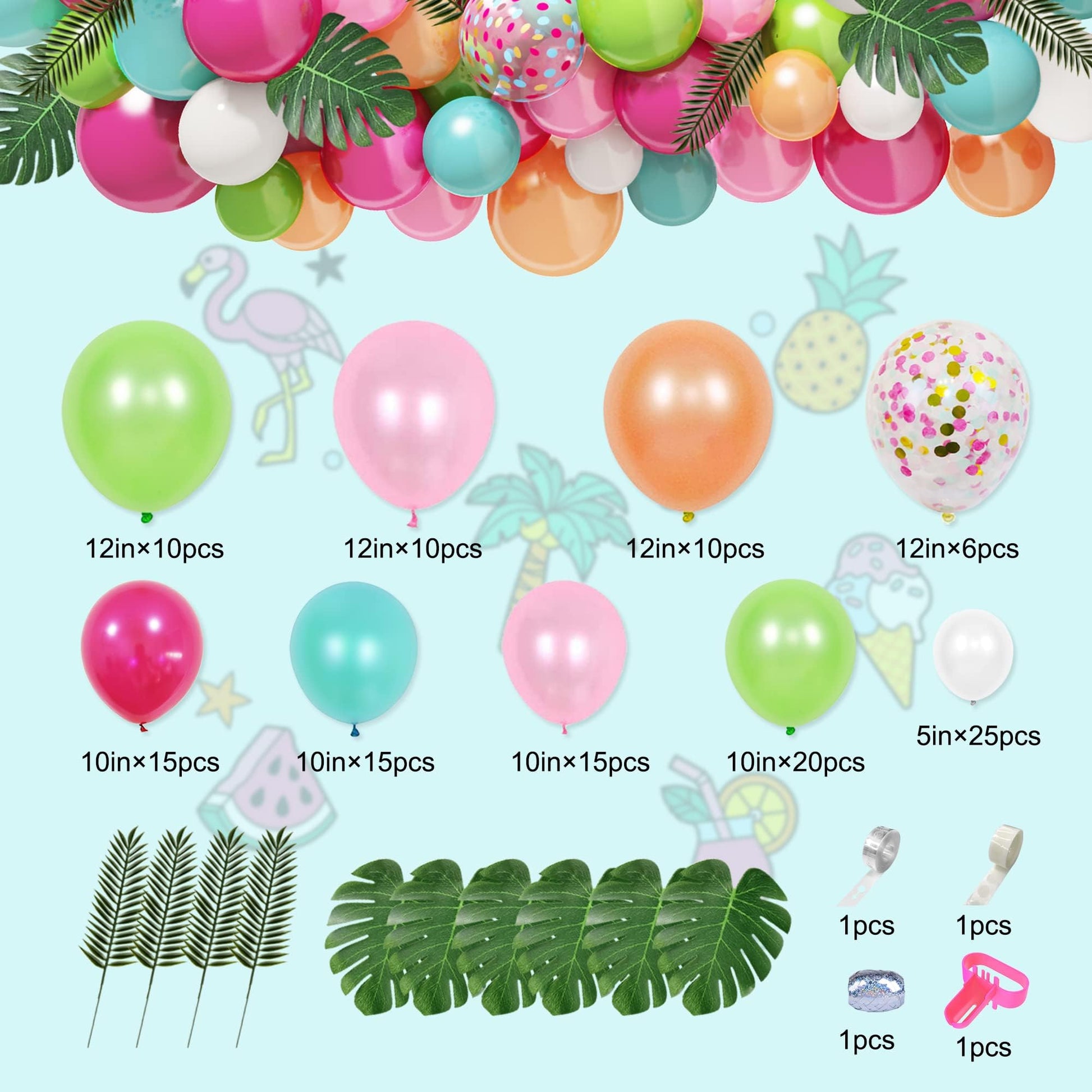 140 Piece Tropical Balloons Garland, Hawaiian Tropical Balloon Garland with Flamingo, Palm, Leaf, Latex Balloons for Summer Party.