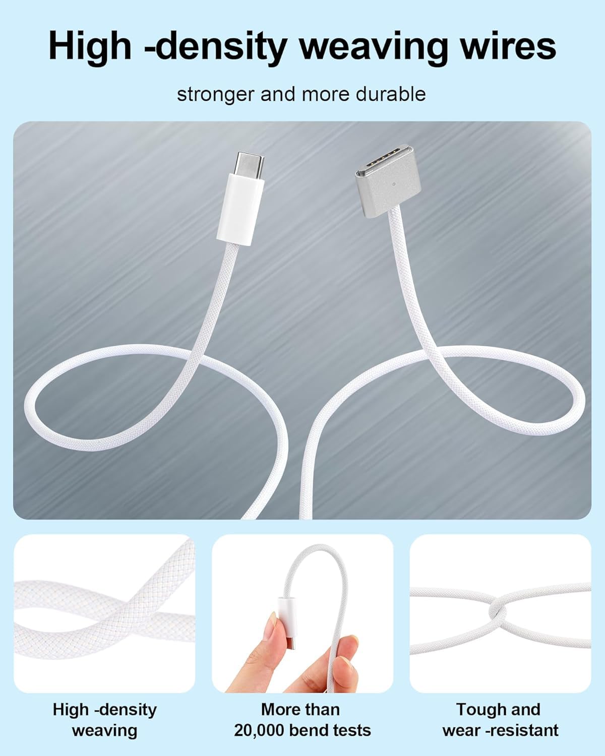["Supports fast charging: USB C to Magnetic 3 Cable supports up to 140W, is backward compatible with 100W/65W, supports PD fast charging, and can fully charge notebooks faster.","Compatibility: USB-C to Magnetic data cable Type-C plug to Magnetic 3 data cable for MacBook Pro/Air after 2012, suitable for PD 45W-140W, compatible with PD charger for MacBook Pro/Air fast charging.","Premium material: This charging cable is made of high-quality PVC material that is durable and has a long lifespan. Length 2M/6.6FT.","Lightweight, portable: This Askoppo charging cable features a magnetic Magnetic 3 connector that easily fits into the MacBook Pro's power port. With sophisticated production technology, it is lightweight, portable, suitable for travel or for use in the café, outdoors, or in the office.","Customer service team: Our products have 3 years of protection. If you encounter quality issues or do not like the product, you can contact us directly via email. We will provide responses and solutions within 24 hours."]