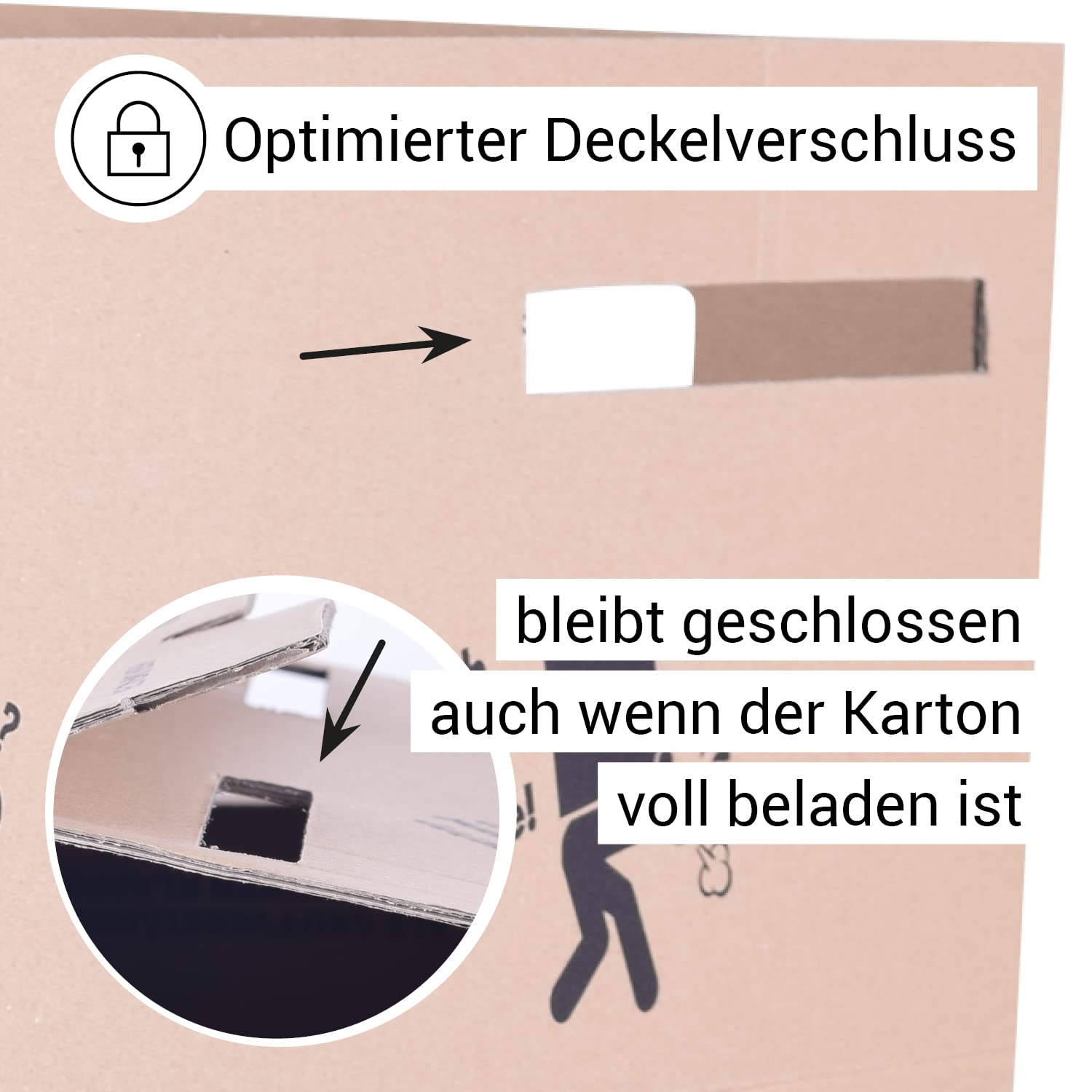 "EASY SETUP π¨: Due to the extended bottom closure flaps, our boxes interlock from the inside. This makes assembling the boxes very easy & quick, eliminating the need for tape. Nothing stands in the way of your move or packing books or files.",