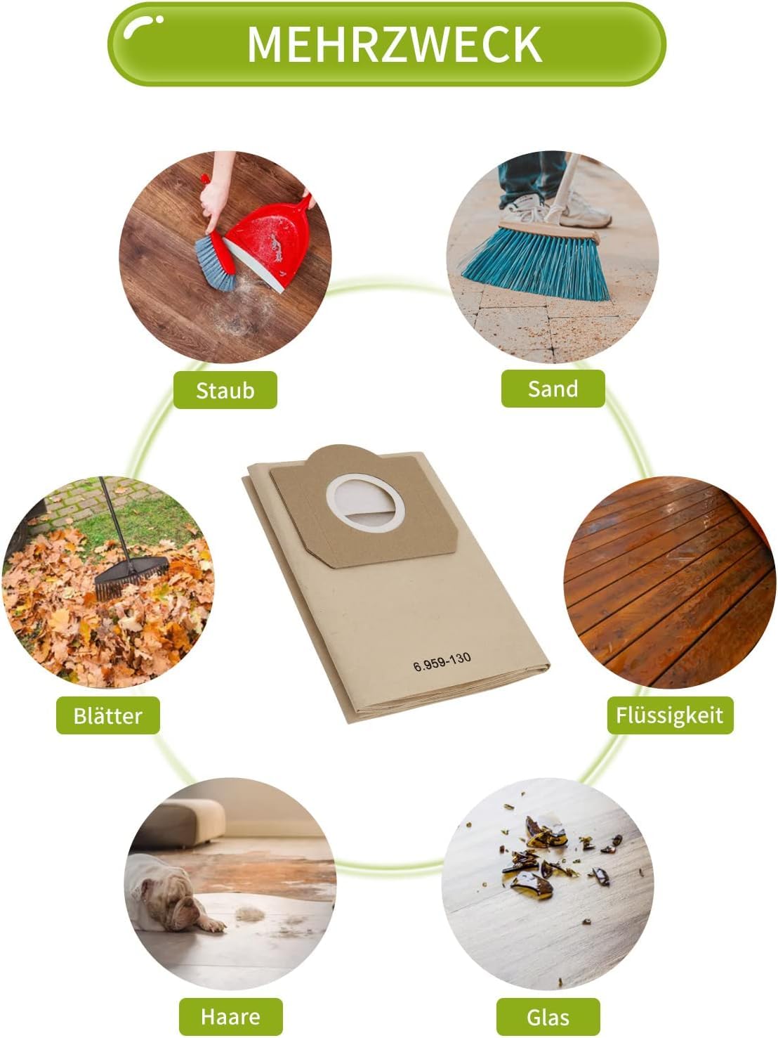 15 pieces of vacuum cleaner bags for Kärcher 6.959-130.0 paper filter bags, filter bags for WD3 1629 MV3 A2201/2204/2504/2554/2251/2604 vacuum cleaner bags filter bags paper bags