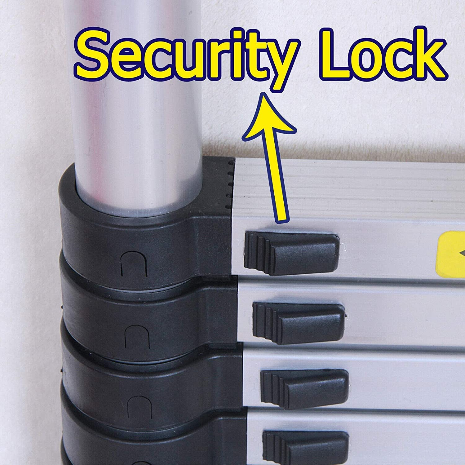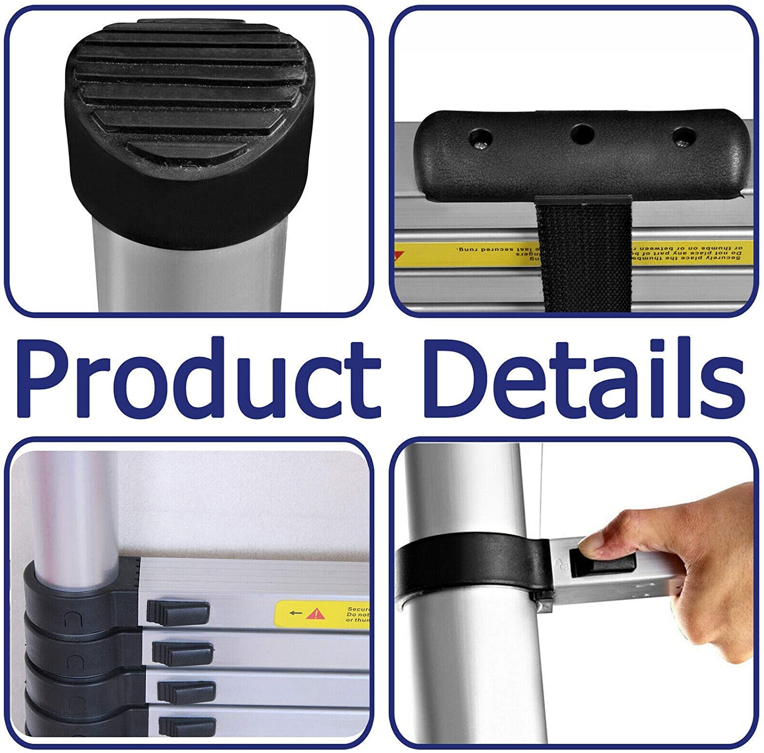 Easy operation: Extend and retract, pull up one section to extend, hear the "click" sound, confirm that both left/right locks are engaged; to retract, unlock one step at a time, do not put hand in step distance, do not pinch hand."