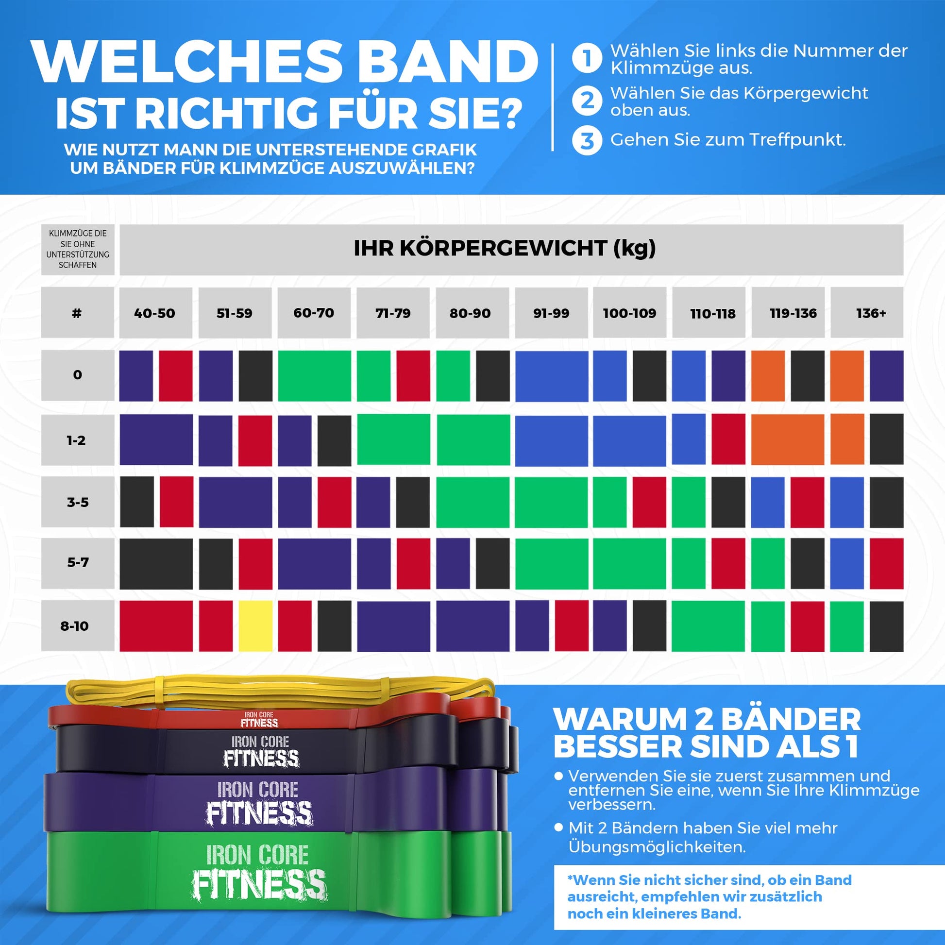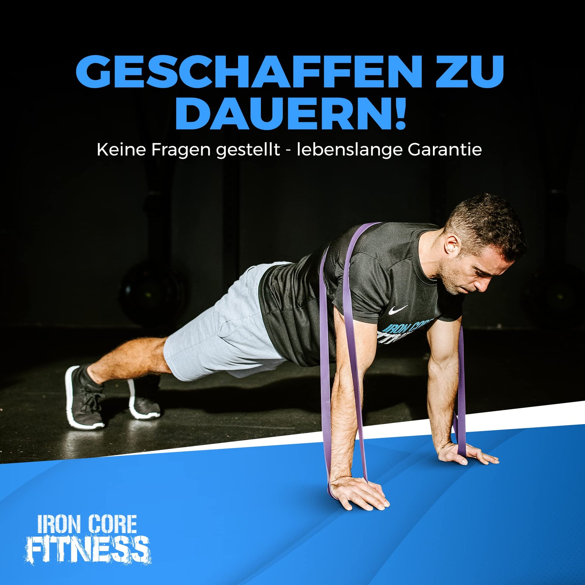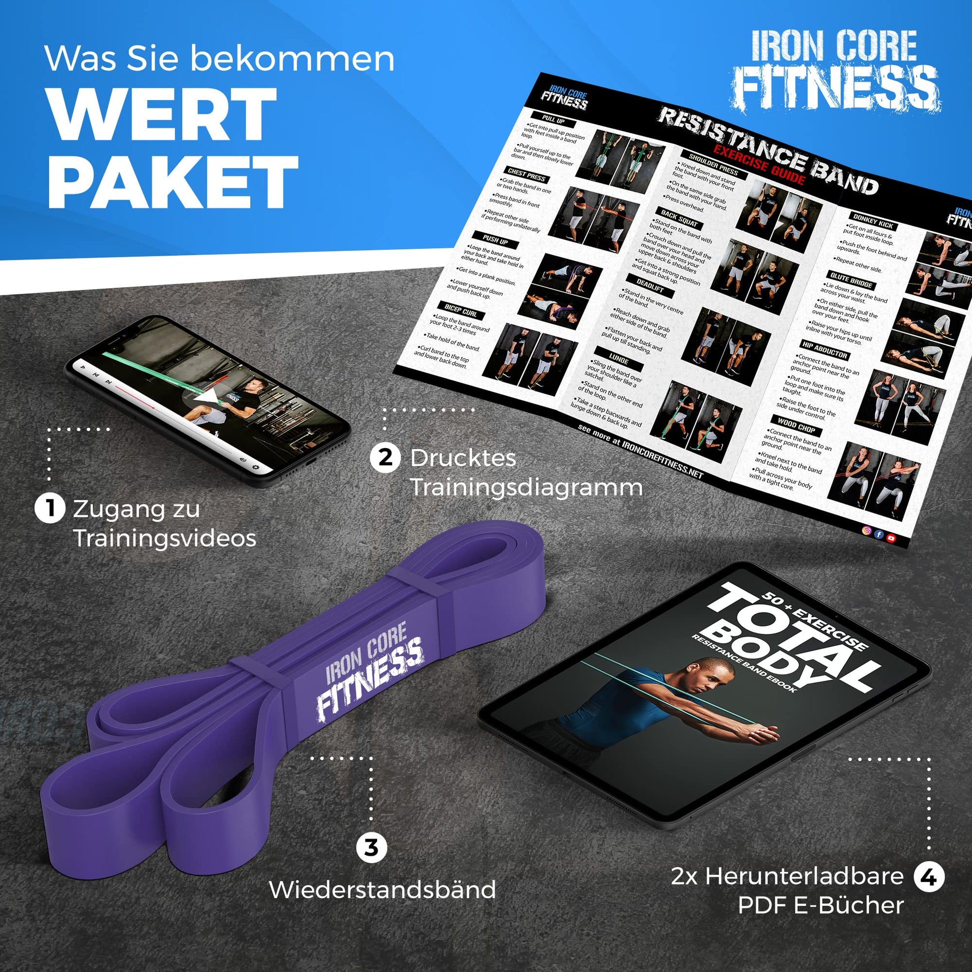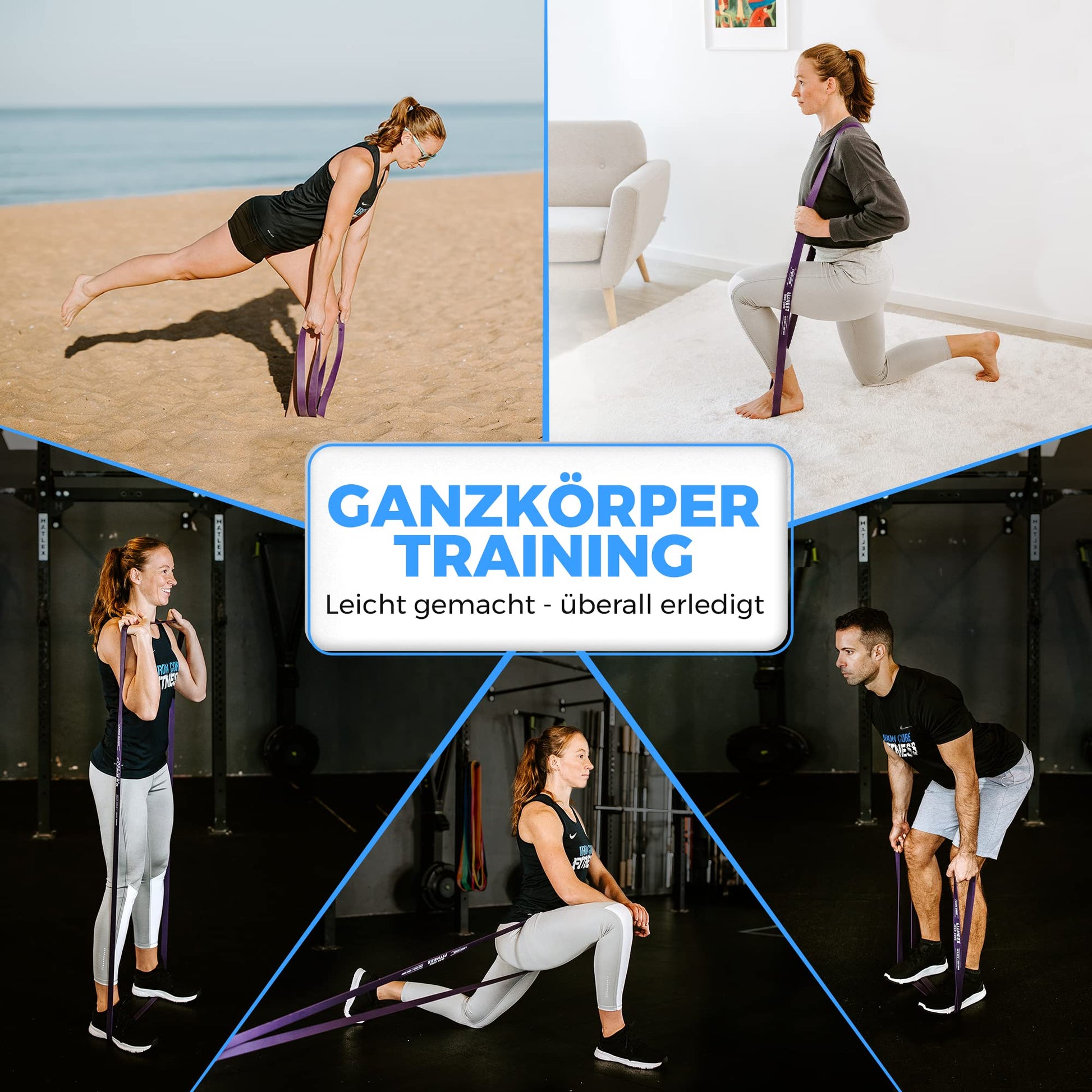["You're looking at purple: Big pull-up training band. Provides 40-80 lbs resistance. 82 inch long loop. 1.14 inch wide. 0.18 inch thick. Weighs 0.57 lbs.", "Versatile band: Our bands are versatile and ideal for pull-ups, gymnastics, powerlifting, cross-training. Boxing, bench press, and push-ups. Also the perfect band for shoulder, thigh, hip, and leg mobility.", "7 different band strengths: Choose your preferred band strength. Each color corresponds to a specific resistance. Our resistance bands range from lightest to heaviest. See our product description below for a detailed breakdown of each band.", "High quality: Our bands are high quality and made of 100% latex. They have been tested for durability, robustness, and safety.", "Resistance bands are sold individually: Choose the desired resistance and add the corresponding band to your shopping cart."]