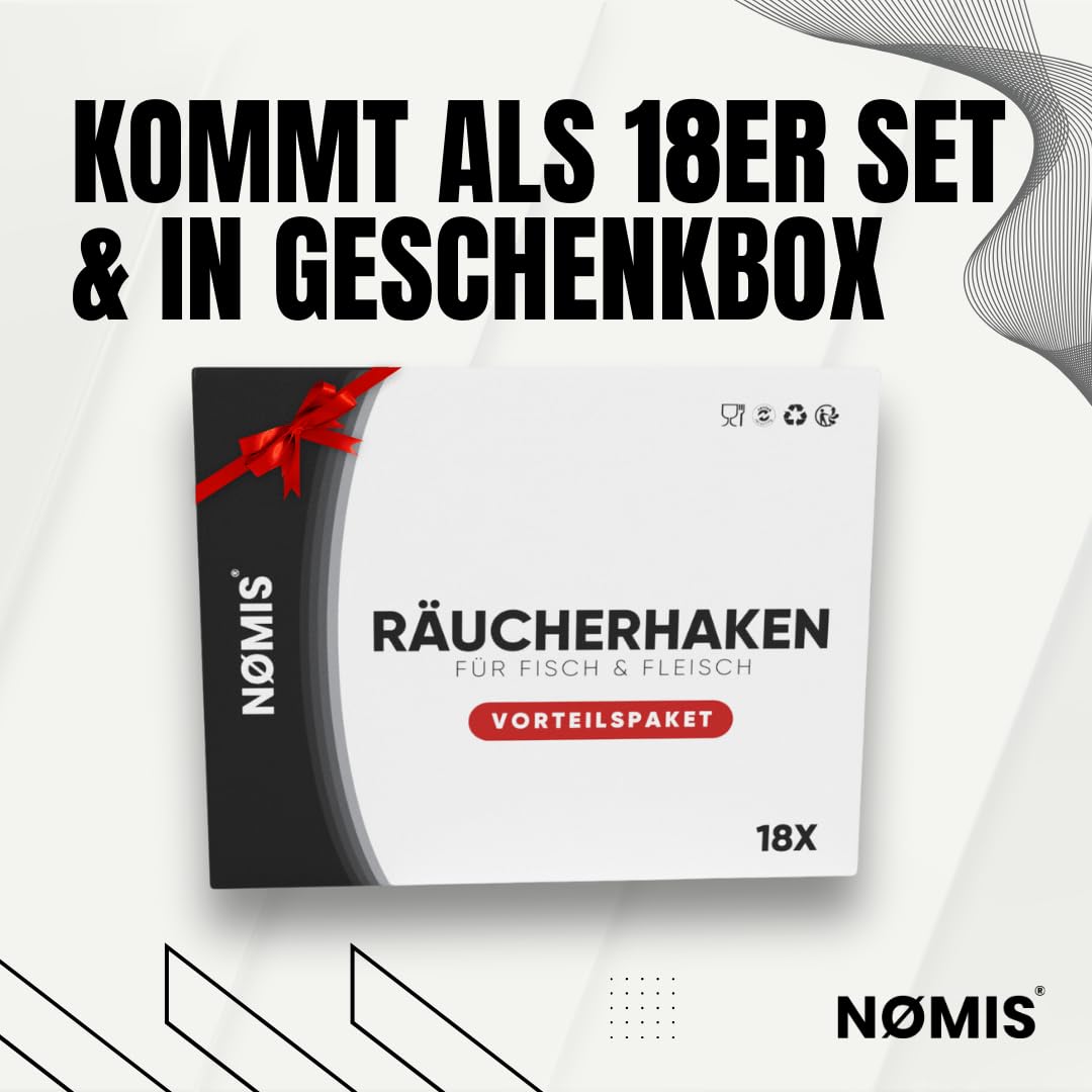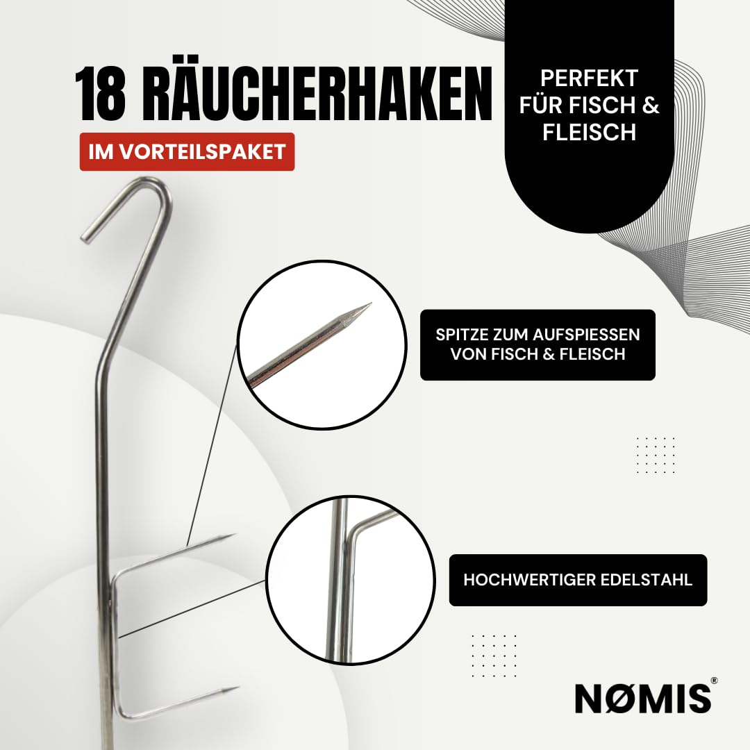 ["✅ VALUE PACK: Our set of 18 smoking hooks offers unbeatable quality at an affordable price.","✅ PERFECT FOR SMOKING: Ideal for meat and fish - smoke your favorite foods in your smoker like a pro.","✅ PREMIUM STAINLESS STEEL: Our butcher hooks are made of high-quality stainless steel, durable and easy to clean.","✅ POPULAR WITH ANGLERS: Whether trout, char, salmon, mackerel, eel, etc. - the smoking hooks fit perfectly. Meat also sits perfectly on the S hook alternative.","✅ 100% SATISFACTION: It is important to us that you have a good smoking experience with our smoking hooks. Let us know if you have any questions. We are always happy to help! Enjoy your meal!"]