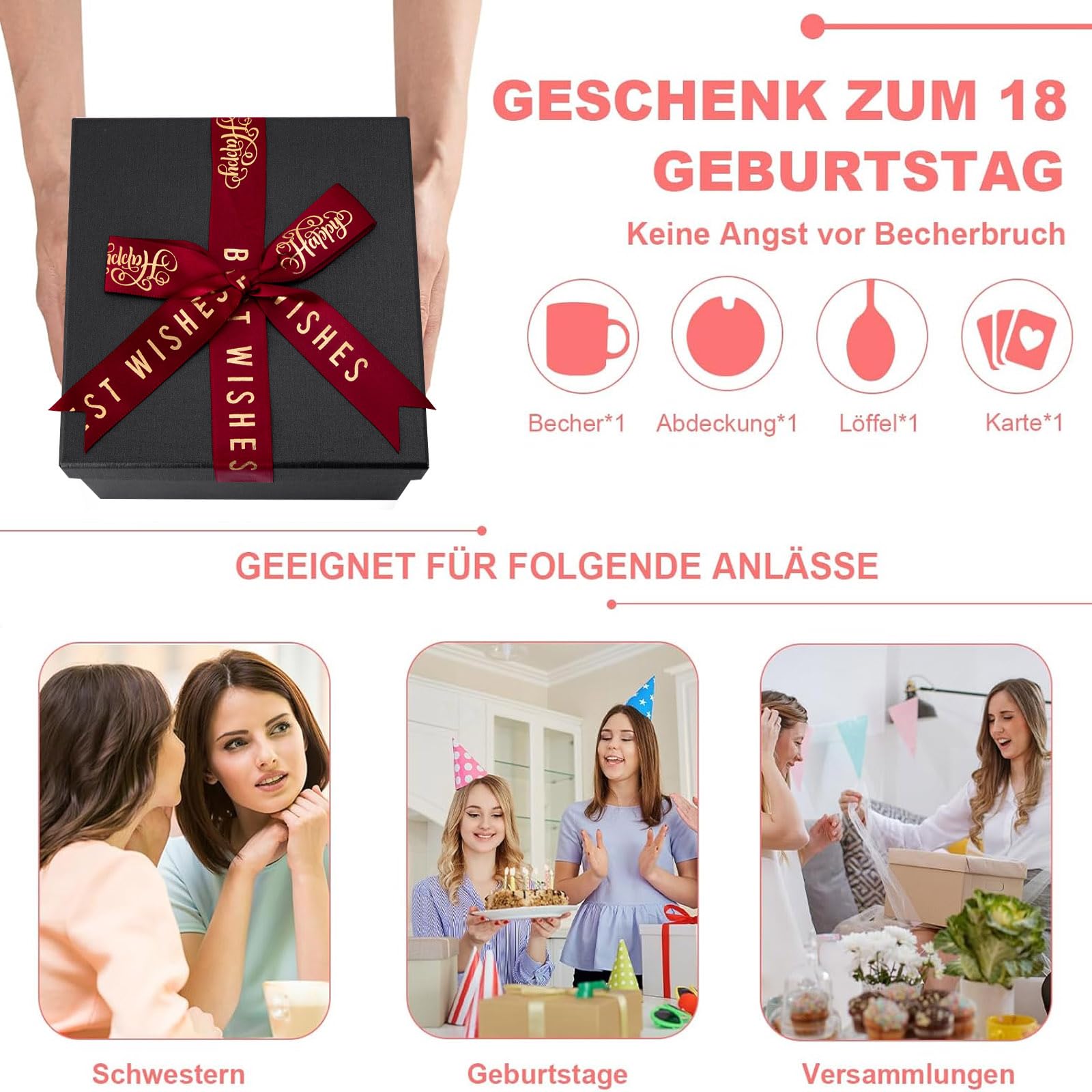 18th Birthday Girl, Happy 18th Birthday, 14oz coffee mug with gold print, Funny gifts for 18th birthday girl daughter, With lid, greeting card, gold spoon, gift box.
