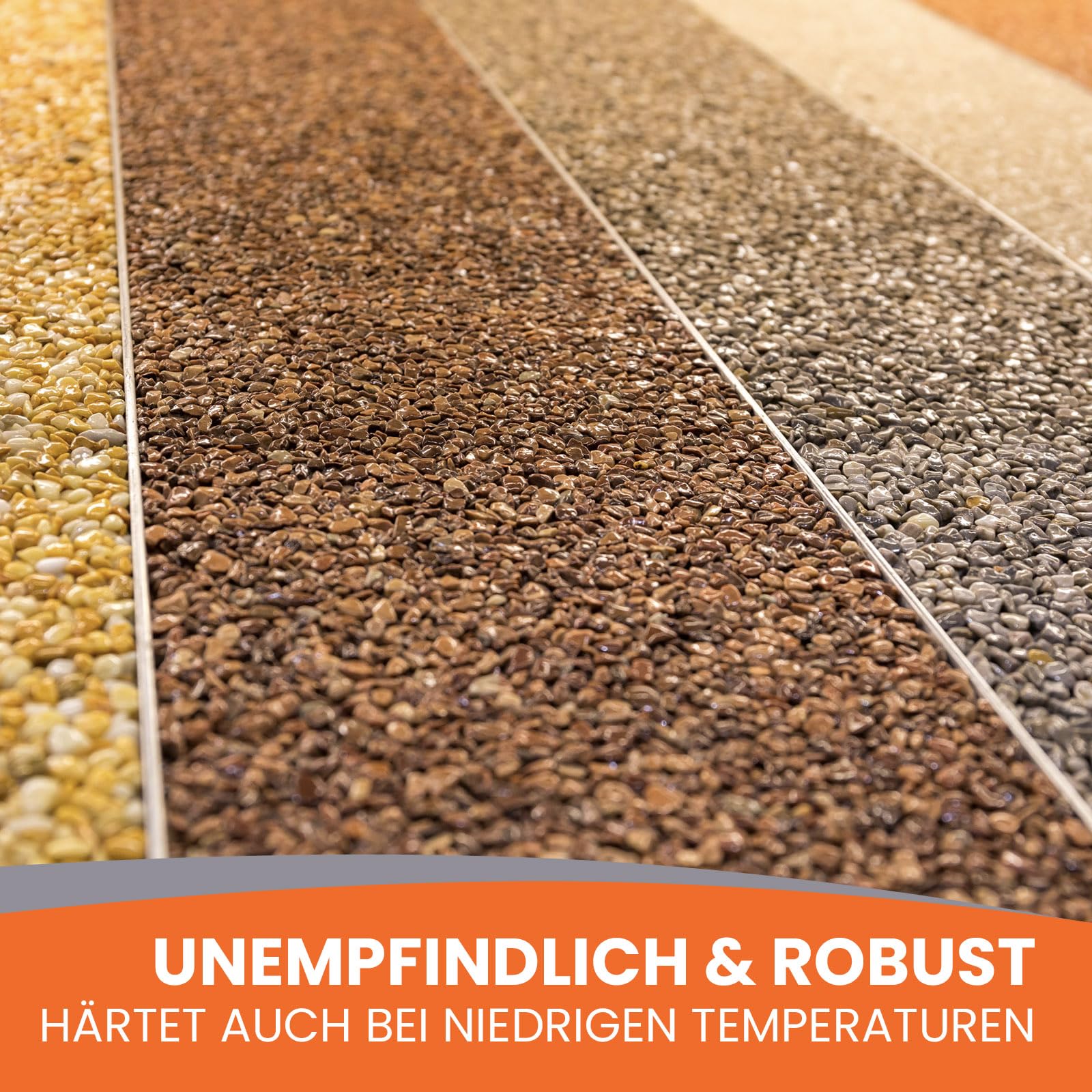 1K PU binder adhesive for outdoor stone carpet, UV-resistant, 4kg clear glossy - no yellowing, elastic, sealing, sufficient for 100kg marble chippings - BEKATEQ BK-667PU.