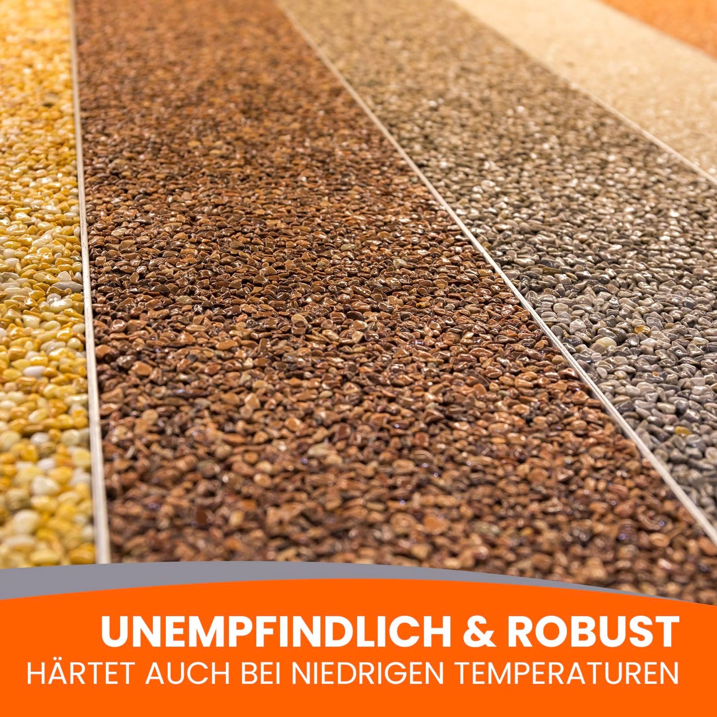 1K PU Binding agent adhesive for outdoor stone carpet, UV-resistant, 2kg colorless glossy - no yellowing, elastic, sealing, sufficient for 50kg marble gravel - BEKATEQ BK-667PU