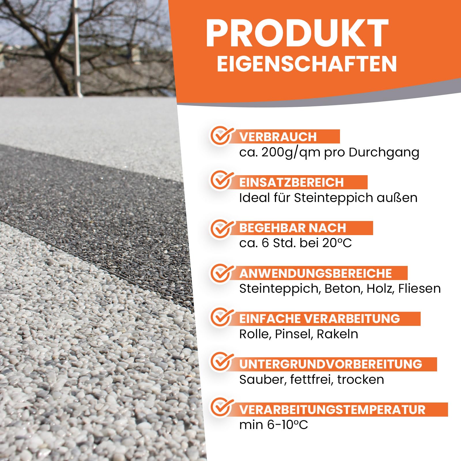 ["1K PU sealing for stone carpet floors inside and outside - dries quickly, easy to roll or brush on, and forms a tough coating",