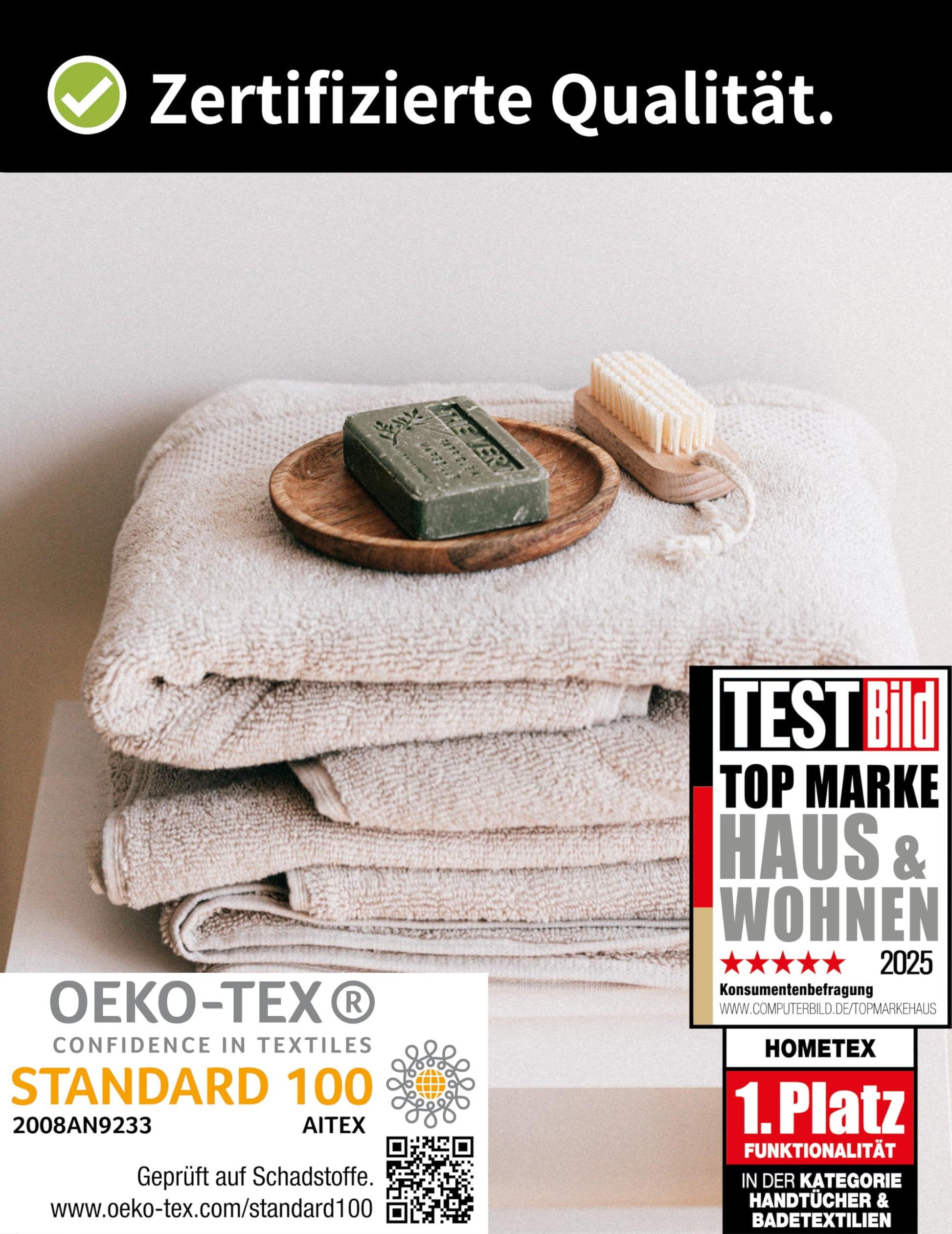 "✅ Material: 100% Cotton - Öko-Tex 100 STANDARD | approx. 500 g/m² | Made of extra soft terry | Guest towel 30x50 cm, hand towel 50x100 cm, bath towel 70x140 cm, and bath towel 100x150 cm"]