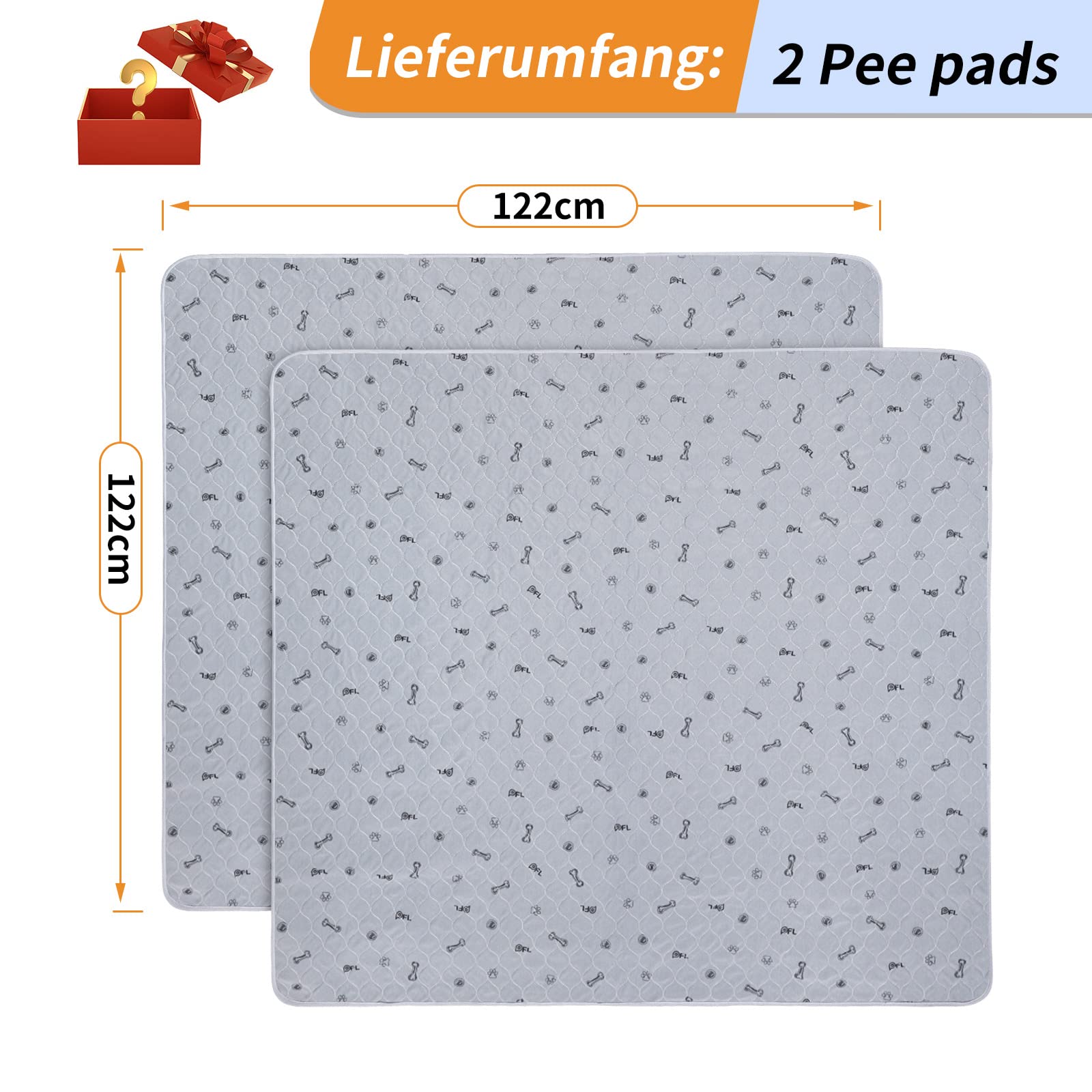 2 highly absorbent puppy pads, 122*122cm waterproof and washable puppy training pads, non-slip dog blanket for dog crate, sofa, and floor in grey color.