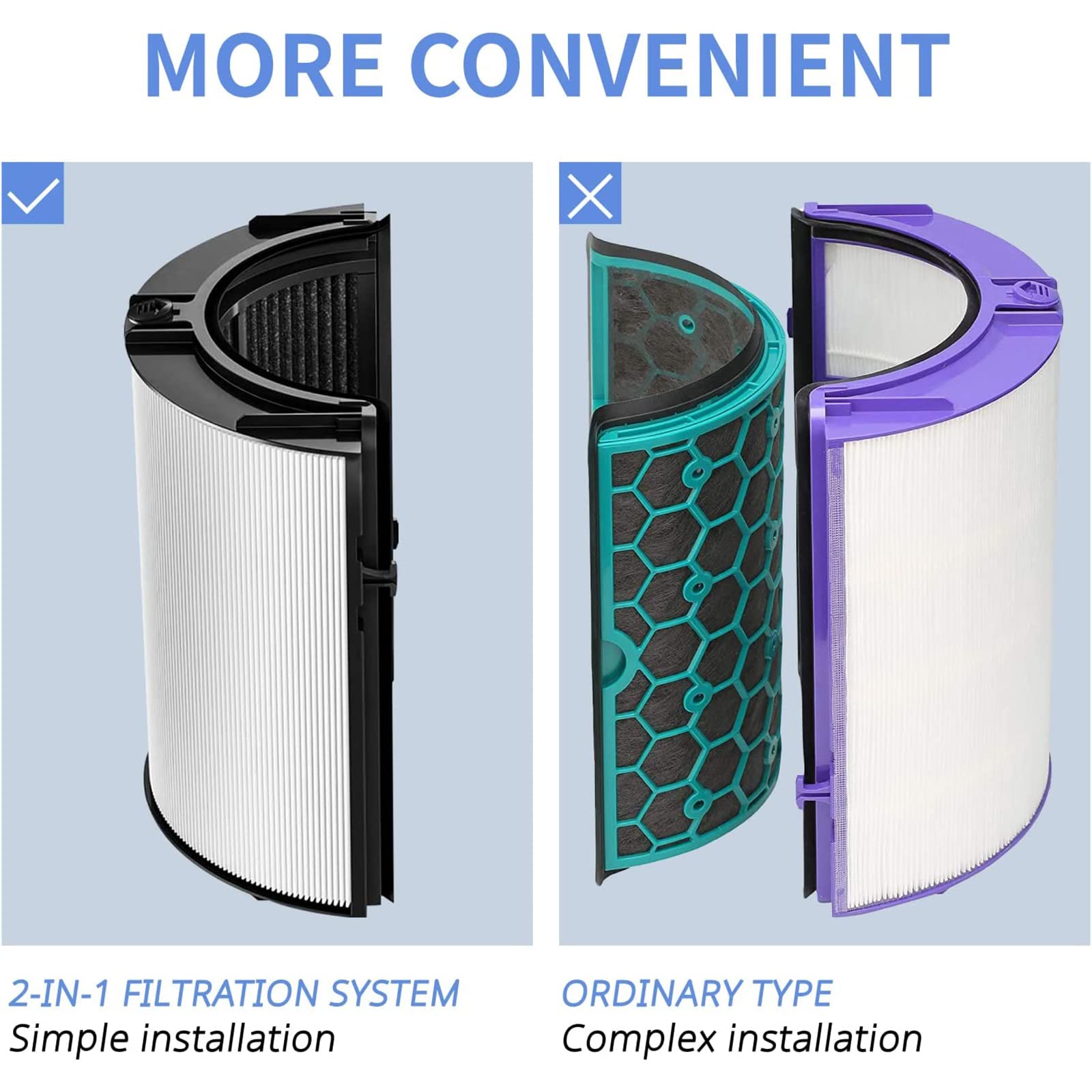 2-in-1 HEPA + Carbon replacement filter compatible with Dyson HP04 TP04 DP04 PH04 HP09 TP09 HP07 TP07 PH03 PH01, H13 grade True HEPA replacement filter.
