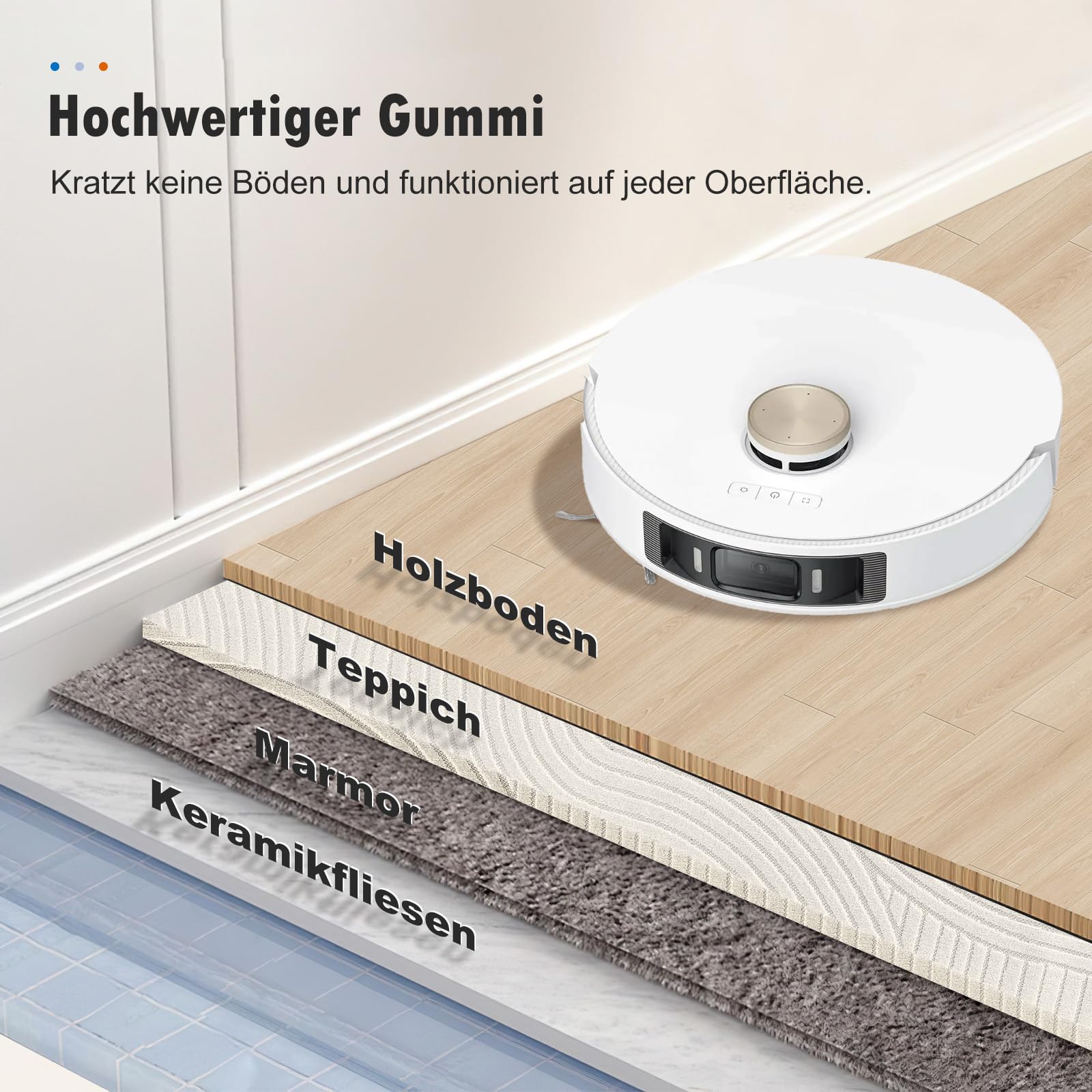 "High-quality Materials: The brush is made of high-quality rubber, has low operating noise, and does not scratch the floor. It is suitable for various floors such as hardwood, tiles, and carpets.",