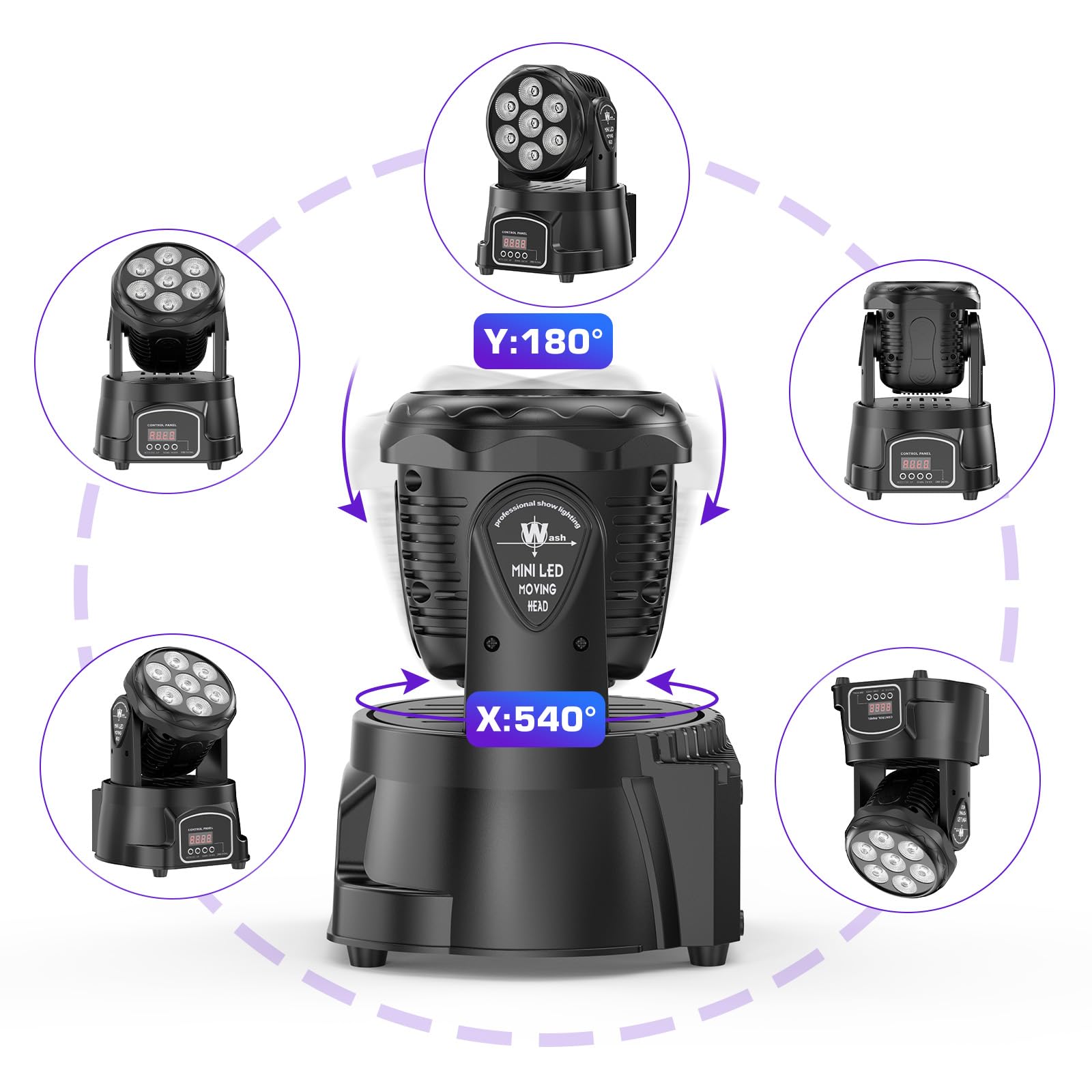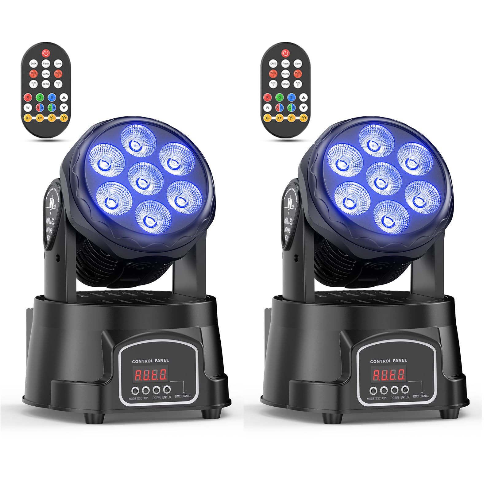 2 pack 7X15W Moving Head Wash LED lights with dmx512 RGBW, 5 control modes, 4 in 1 DJ lights for live events, bar, karaoke, Christmas, Halloween, home parties, weddings.