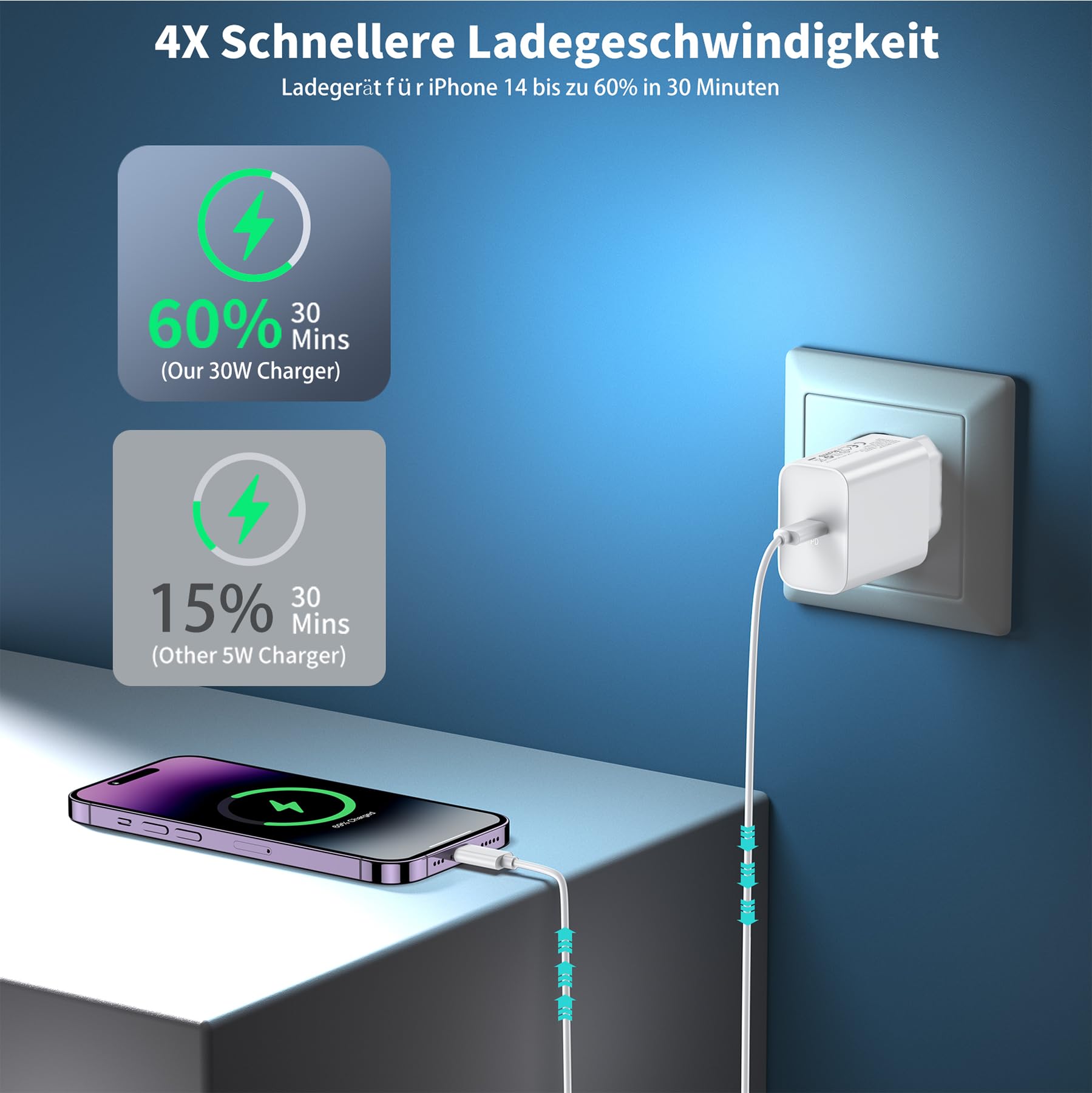 ["Quick Charge: This 30W usb c charging cable for iPhone is equipped with advanced fast charging technology, providing efficient charging speed for devices like for iPhone, iPad, and more. With a maximum output power of 30W, you can quickly charge your device, save time, and ensure that your device is fully charged in no time.","Wide Compatibility: Compatible with a variety of devices, such as for iPhone 14 (14/14 Plus/14 Pro/14 Pro Max), iPhone 13 (13/13 mini/13 Plus/13 Pro/13 Pro Max), iPhone 12 (12/12 Mini/12 Plus/12 Pro/12 Pro Max), iPhone SE 2020, iPhone 11 (11/11 Pro/11 Pro Max), iPhone XS (XS/XS Max), iPhone XR, iPhone X/8/8 Plus/7 (7/7 Plus/6/6 Plus/6S/6S Plus), and more. It is also compatible with for iPad 9/8/7/6/5, iPad Air (3/2/1), for iPad mini (5/4/3/2), and AirPods Pro (3/2), covering all your charging needs.","2-Meter Charging Cable: This usb c adapter includes a 2-meter (6.6 ft) long C-to-L fast charging cable for iPhone, providing more flexibility than traditional 1-meter cables. Whether in bed, at the desk, or in the car, you can easily connect and charge your device without being restricted by a too short cable, offering a more convenient charging experience. (Note: C-to-C fast charging cable NOT included)","Safety Protection: The charger offers multiple built-in protection mechanisms, including overload, overheat, short circuit, and overcurrent protection. This allows you to charge your device with complete safety, without worrying about battery damage or overcharging, and enjoy a safe and stable charging experience.","Compact and Portable: With its compact and lightweight design, this charger is easy to carry, making it a perfect companion for travel and daily use."]