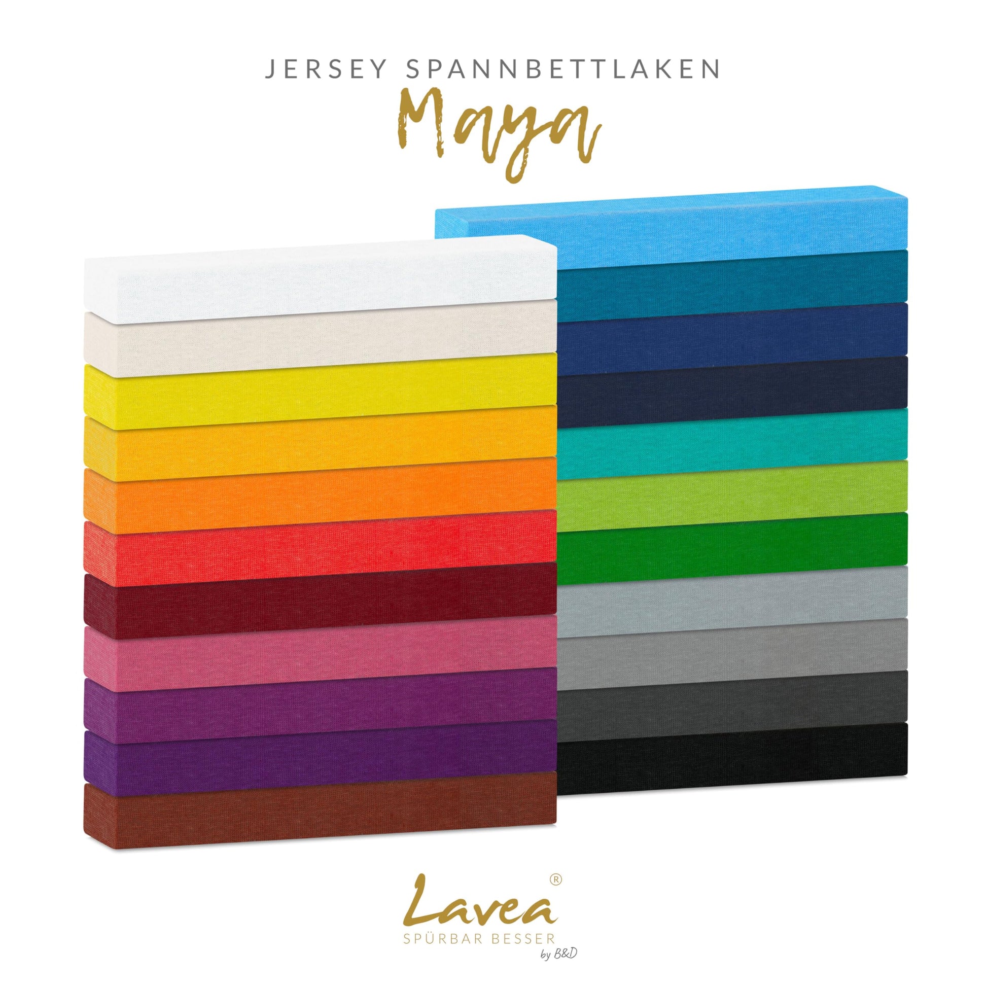 ["The Lavea 2-pack fitted sheets are suitable for all mattresses up to 20 cm.","Jersey fitted sheets made of 100% cotton for premium comfort and cozy nights.","Our fitted sheets with elastic edges impress with a perfect fit, opacity, and high durability. In addition, the sheets are washable up to 60 degrees.","Thanks to our quality round rubber, the sheets can be easily put on and the jersey remains wrinkle-free on the mattress. Easy to care for & allergy-friendly. Our textiles are produced according to OekoTex100 standard."]