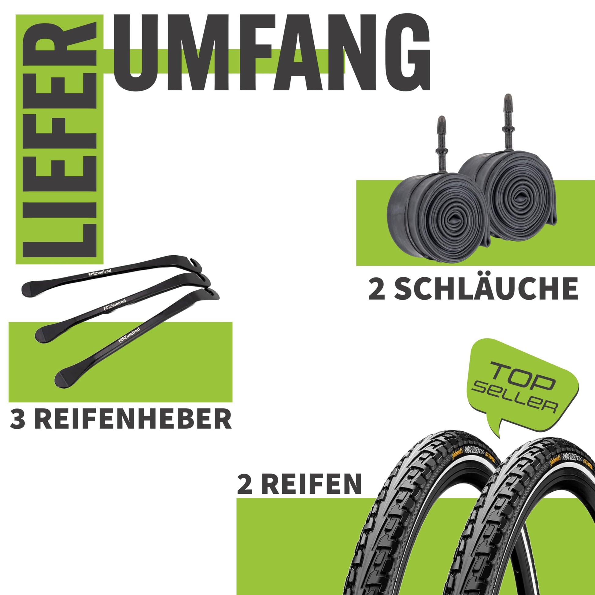 2-piece set Continental bike tires Ride Tour 28 inch (37-622) selectable with tubes + 3 MSZweirad tire levers (28 x 1 3/8 (37-622), DV tubes)