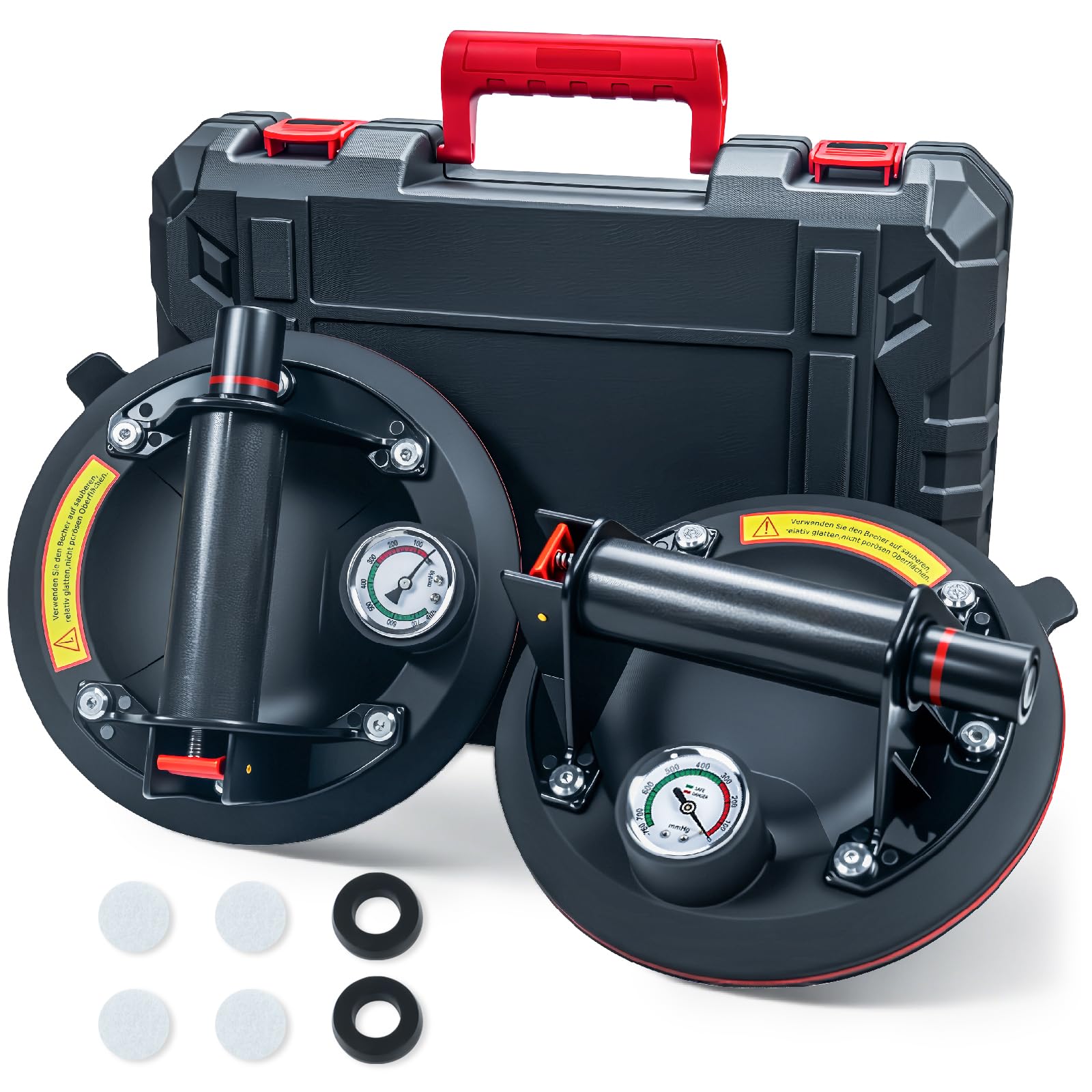 2-piece Vacuum Suction Cup Set with Manometer|Capacity Max.220KG,Vacuum Suction Cup Tile Glass Lifter with Portable Tool Box,Suction Cup for Glass,Tile,Marble