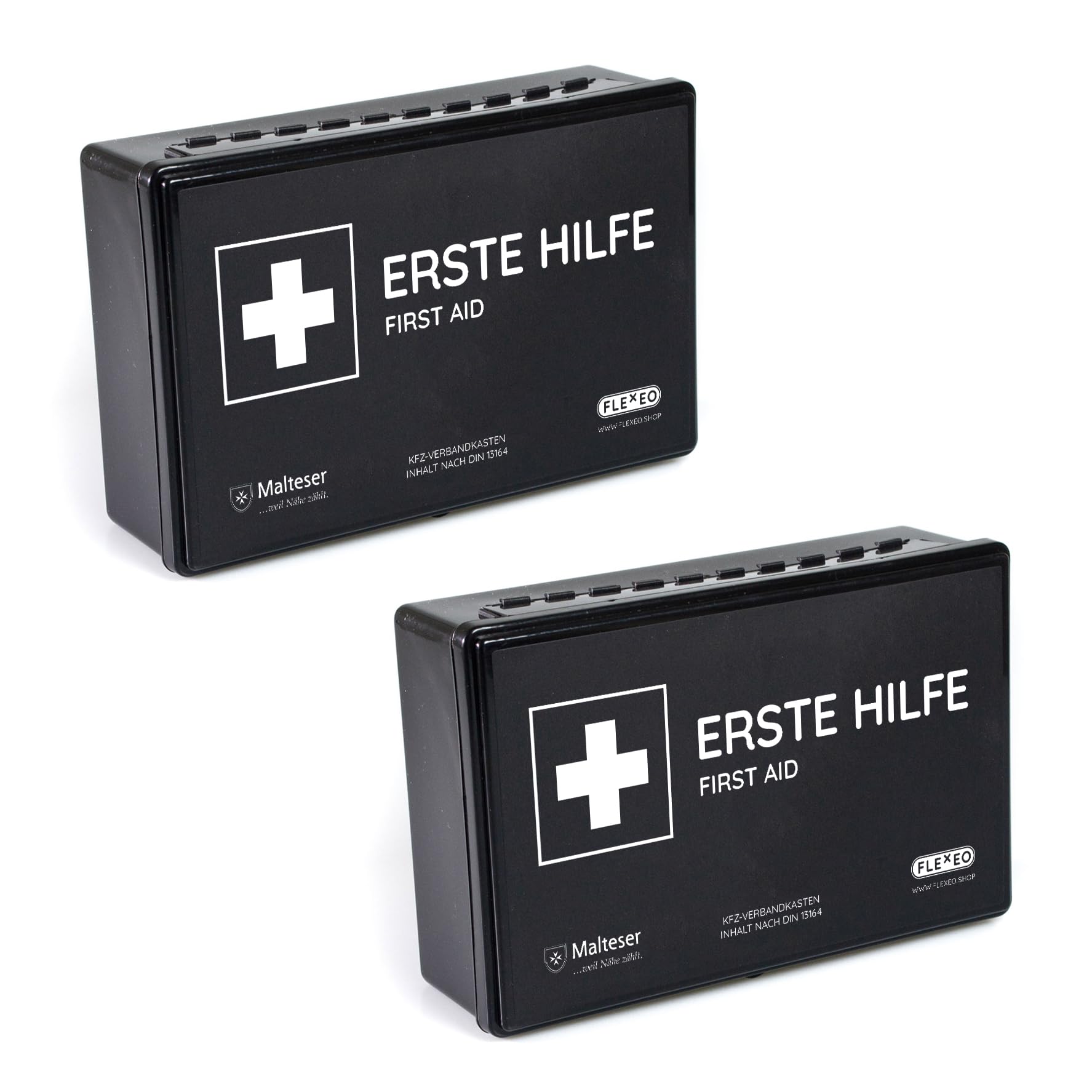 2-piece vehicle first aid kit according to the current DIN 13164:2022 | includes 2 med. face masks each | Valid for 2025 according to StVZO | First aid kit for car/motorcycle | Black