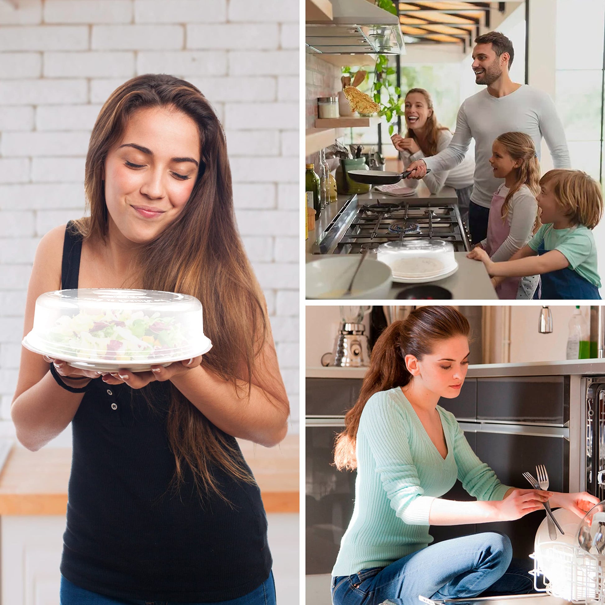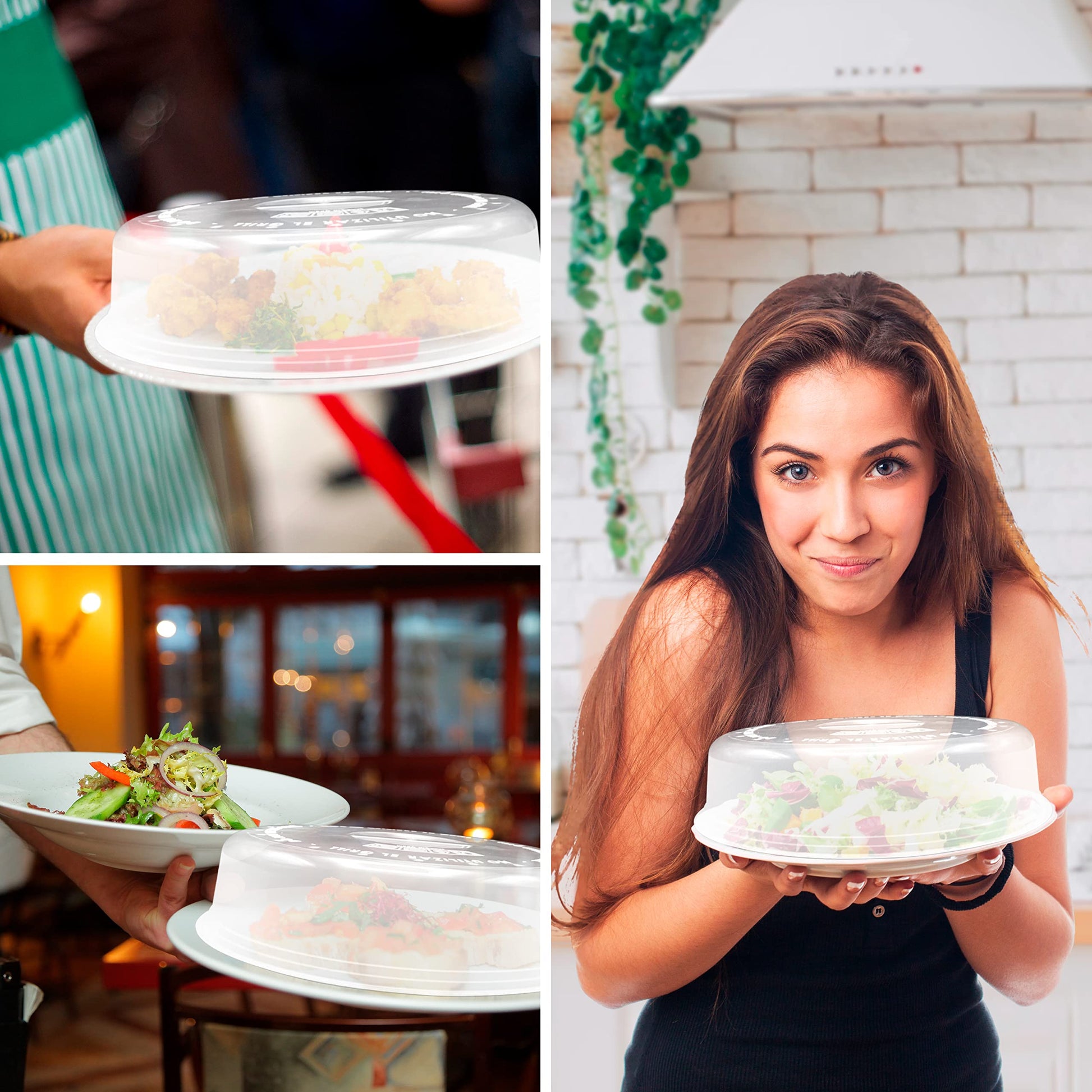 ["Kitchen utensil] Heat your food easily and keep your microwave clean with this microwave cover. Avoid potential splatters while heating your food with this microwave lid.", "[Applications] These microwave covers are suitable for any type of dish and are ideal for covering food, keeping it warm, and protecting against insects in the kitchen.", "[Features] Microwave covers, easy to clean and dishwasher safe. They have small holes for steam to escape. Not recommended for use in grill mode.", "[Dimensions] The largest microwave cover has a diameter of 10.6 inches and a height of 2.8 inches. The other cover has a diameter of 9.4 inches and a height of 2.8 inches.", "[0 % BPA PLASTIC] The microwave covers do not contain BPA (Bisphenol A)."]