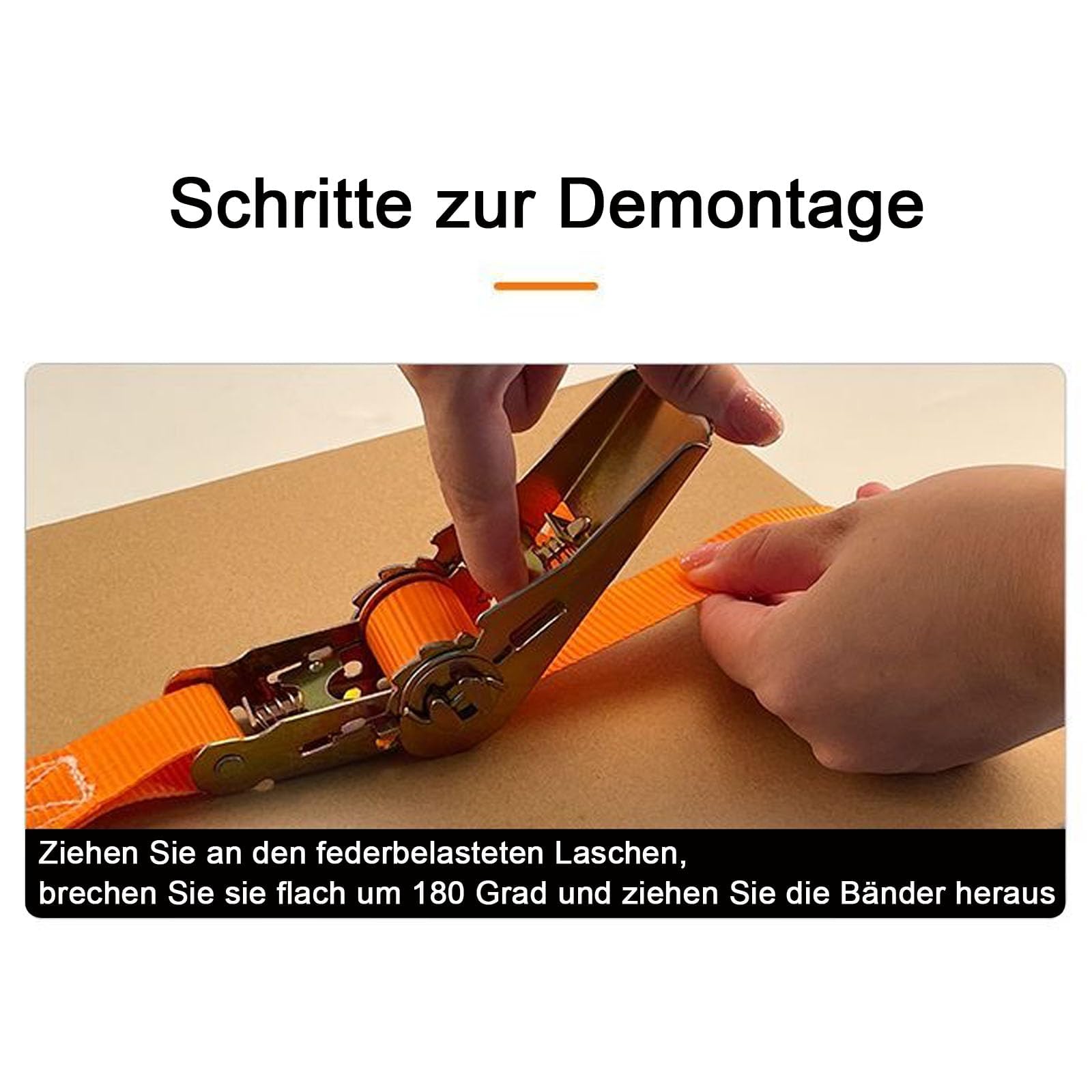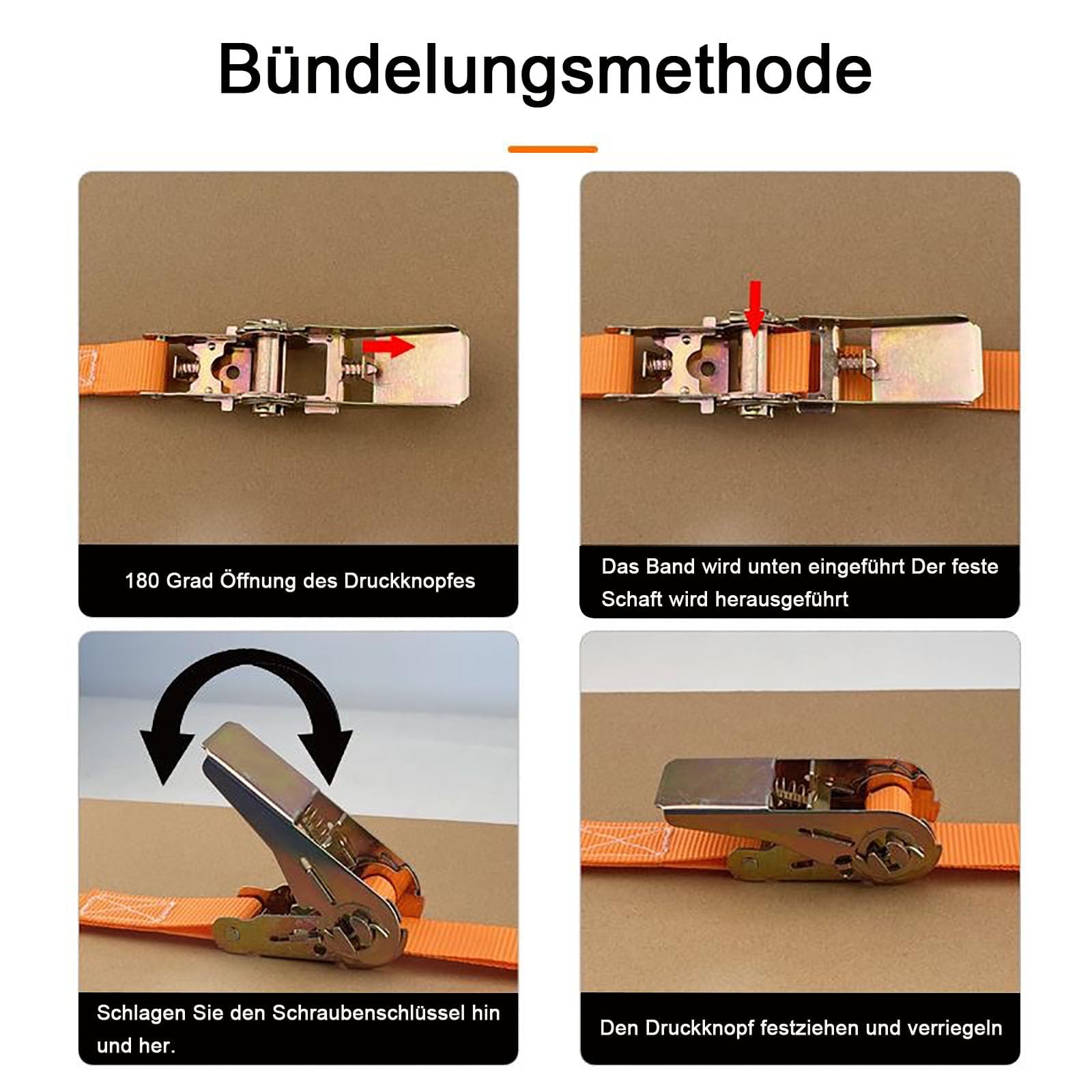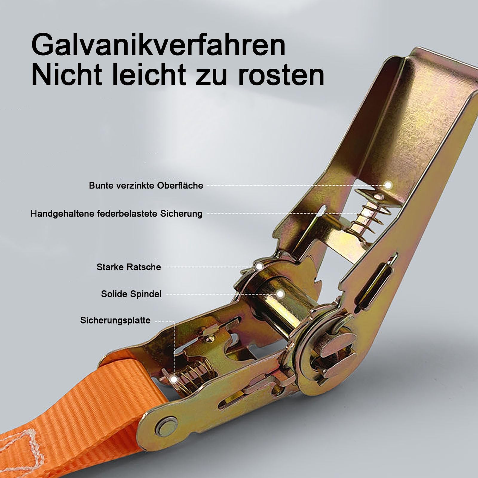 "【Verified】Our ratchet straps comply with the standard DIN EN 12195-2. Strict quality controls ensure 100% safety.","【Durable Material】This ratchet strap is made of high-quality polyester fibers, ratchet straps, and sturdy metal.","【Corrosion-Resistant Material】Specially used hardened steel for long-lasting use in any weather. Durable tie-down straps for transporting & securing roof boxes, awnings, canoes, SUPs & boats.","【Easy Operation & Release】The strap is wrapped around the bundle and then the tie-down strap is pulled through the metal ratchet and tensioned using the lever until the desired tension is reached.","【Safety】With ratchet straps and straps with soft loops, you can secure items to cars, ATVs, and trucks. The straps have rubber-coated stainless steel handles with smooth, easy-to-open closures and a maximum load capacity of 1000 kg."