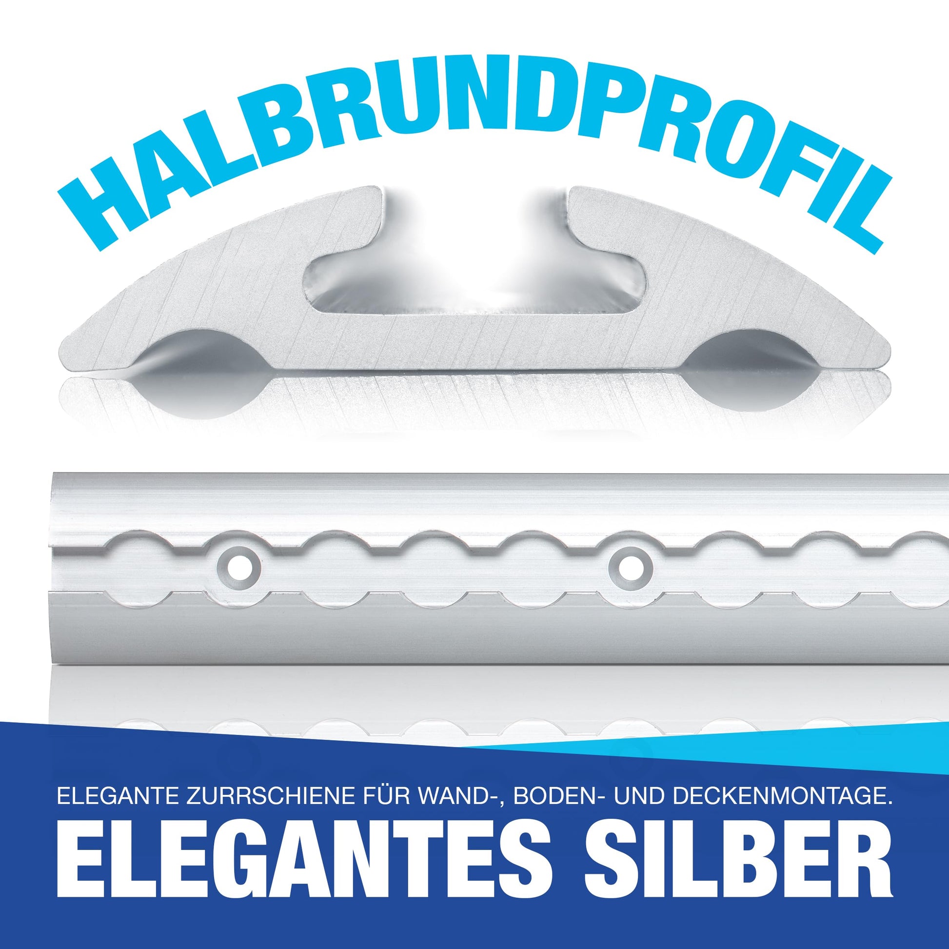 2 pieces of 2m half-round aluminum airline rail with holes - bundle incl. 10 double fittings | Load securing for trucks, trailers, motorhomes | anodized | 1975mm