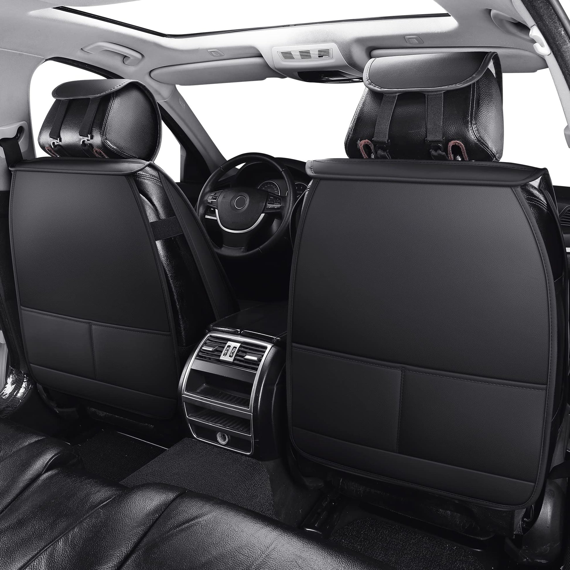 "SELECTED MATERIAL: Car seat cover made of high-quality microfiber nappa leather will enhance your touch, the leather surface has good abrasion resistance to protect the seat from important scratches, and can be easily cleaned by wiping with a damp towel. UNIVERSAL FIT: Leather car seat covers fit 90% of all vehicles, including cars, SUVs, EVs, trucks, vans, and SUVs. If you are unsure if it fits your car, please ask our customer service! SAFETY: The car seat cover can wrap and protect the car seat before and after, as well as with a rear seat organizer for the front seat and a headrest cover. Use anti-slip pads made of polyester fibers on the back, airbag compatible, make driving safer. EASY INSTALLATION: The seat cover includes 2 seat cushion covers and 2 headrest covers, easy to install, can be installed within 20 minutes without professional experience. VARIOUS STYLES TO CHOOSE FROM: You can define a new look for your car as you like. 30 days Amazon Prime money back guaranteed and 12 months warranty, feel free to contact us for support."