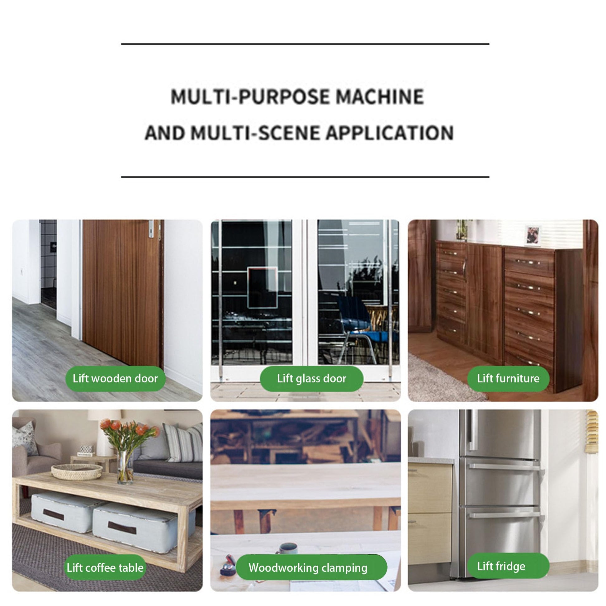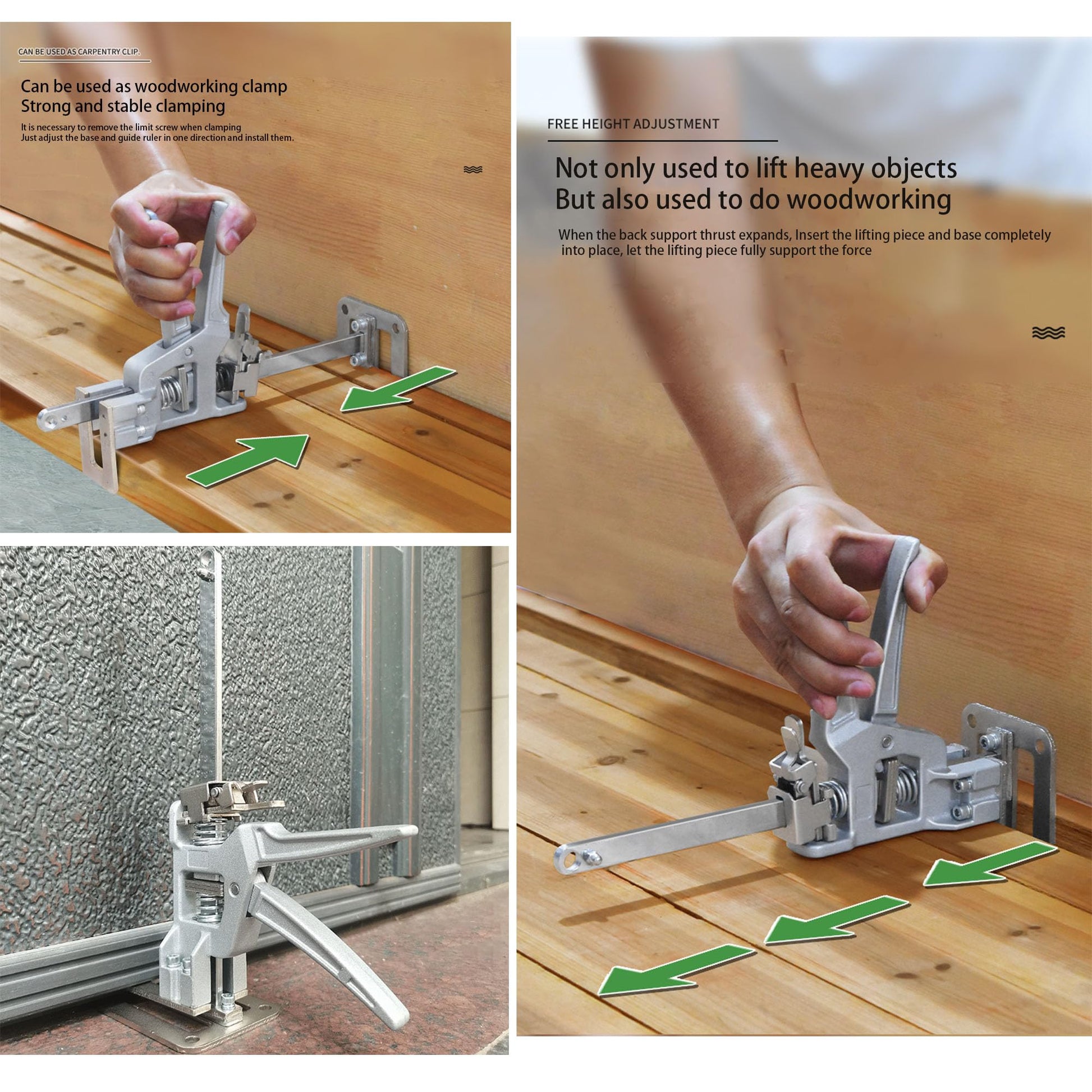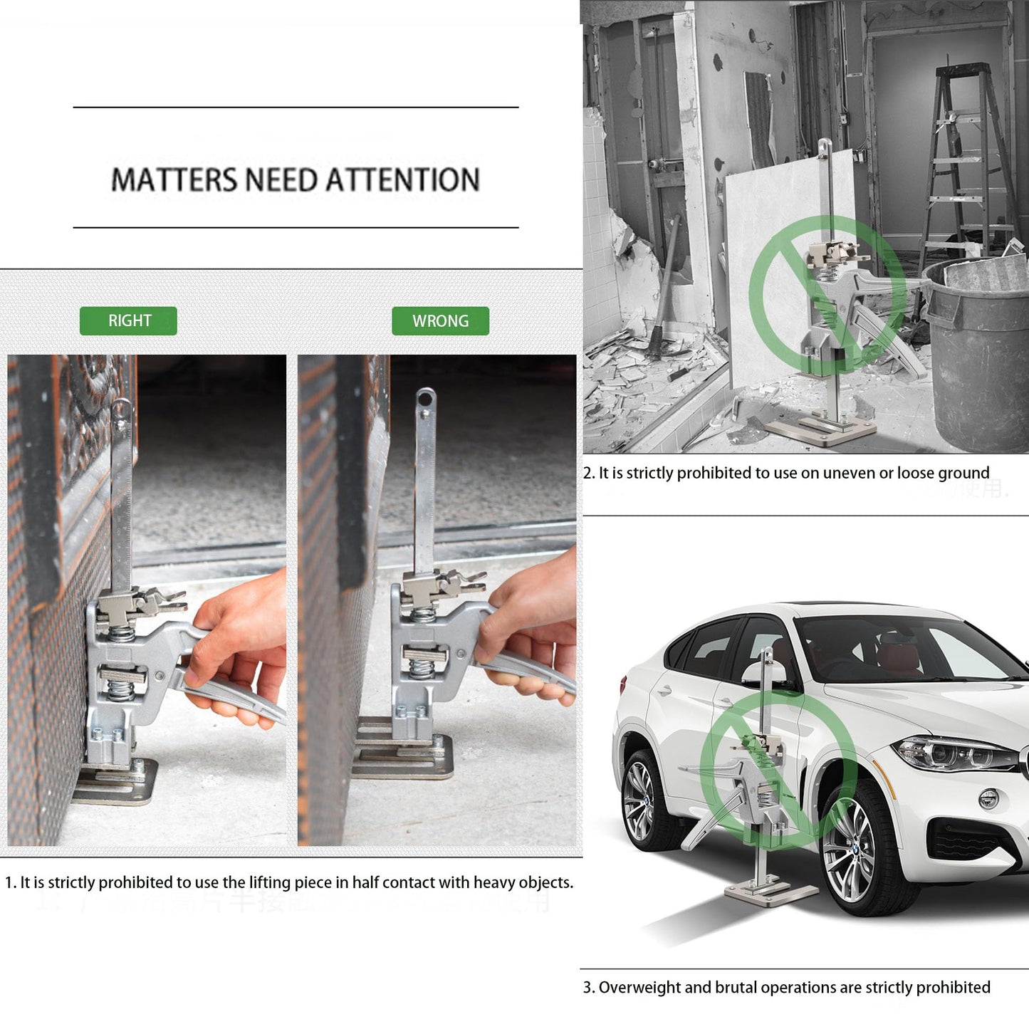 "Full metal casing: This drywall cart jack supports and stabilizes the frame! It had a full metal body made of thickened stainless steel and aluminum alloy. The high-quality materials and innovative design ensure reliability and durability, smooth and consistent performance. Work-saving arm: The two-piece small cart jack can help you save a lot of work when lifting heavy objects alone. This sturdy hand cart jack provides additional support for lifting and holding heavy objects. 2 pieces lifting capacity: 440 lbs, lifting range: 9.45 inches. Slow descent mode: This latest version adds a slow descent mode inch by inch, allowing you to slowly and precisely lower objects, making it ideal for delicate or fragile objects that require extra care. This also helps reduce potential operator injuries. Multipurpose hand tool: It is an essential efficiency-enhancing tool for installing and leveling wall tiles, washing machines, door panels, windows, or cleaning the floor under beds and sofas. You can also reorient the base's guide ruler into a powerful woodworking clamp. If you need a third hand, these work-saving lifts are simply the best in your toolbox! Easy to use: no training or setup required, take it out of the box and operate it with one hand. Please use a pair together on a stable and flat platform. Insert the arm into the lower gap and grip the handle repeatedly to lift the weight to the desired height. Press the unlock trigger to lower the arms when the work is done."