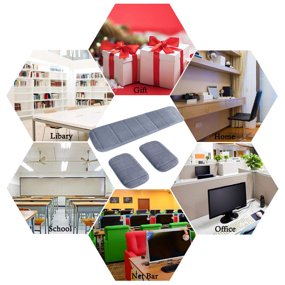 ["【Long & Short Size Combination Set】One purchase and two options, different sizes provide different experiences. Our upgraded elbow pads, the long one is more stable and the short one is more flexible. You can choose the appropriate size according to the situation.","【Necessary Game & Office Addition】Long hours at the office or playing at home increase the extra pressure and strain on your hand and wrist. It is necessary to give them relaxation and care by resting on a slow rebound memory cotton keyboard mat.","【Comfortable and Pain-relieving】Soft and breathable cotton on the top, comfortable and ergonomic wearing feel, memory foam structure, slow rebound, not easily deformed, ideal for longer periods of use, relieve pressure on the arm and elbow, reduce strain on the hand and wrist.","【Rubber Anti-Slip Design & Practical】Natural rubber anti-slip design on the bottom to prevent slipping. They are a wonderful partner for office, home, laptop, desktop computer, and gaming keyboard. They are also perfect for students or children to reduce elbow pressure.","【Package Information】1 long piece + 1 set (2 pieces) short gray computer elbow pads. You can arrange and use them as you like."]