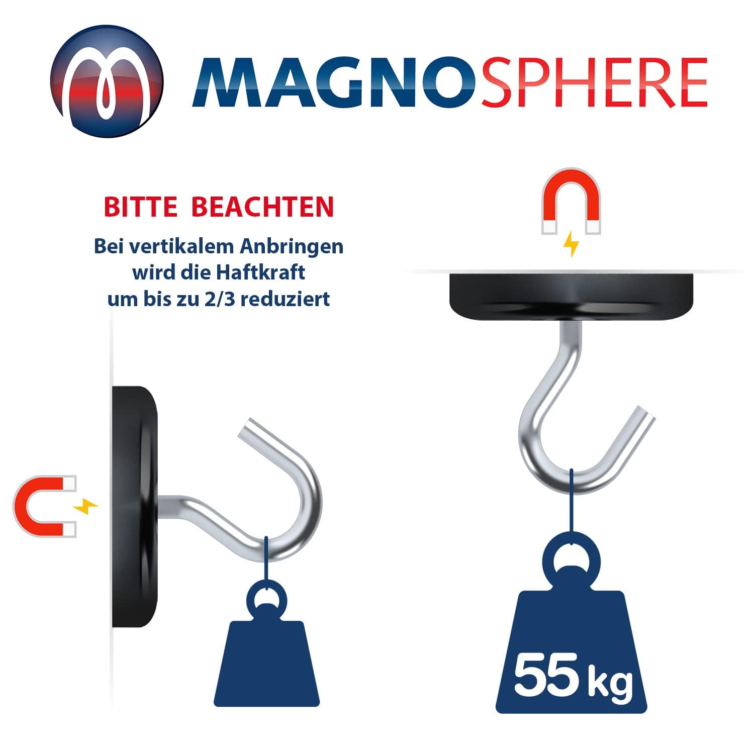 ["ℹ️QUANTITY: 2 pieces - DIAMETER (D): Ø 3.46 inches - TOTAL HEIGHT (H): 0.93 inches - THREAD (m): M8 - DISH HEIGHT (h1): 0.33 inches - THREAD LENGTH (h2): 0.59 inches - OPERATING TEMPERATURE: max. 176°F - HOLDING FORCE: max. 121 lbs","✅STRONG HOLDING FORCE: Our rubber coated neodymium magnets with thread can hold an impressive 121 lbs, providing a reliable mounting solution for car lights, cameras, tools, and more","✅PROTECTION AND ANTI-SLIP: With the rubberized surface, our magnets offer effective protection against scratches and damages. The anti-slip coating ensures a secure grip, even on smooth surfaces","✅VERSATILE APPLICATIONS: Ideal for use in vehicles, RVs, workshops, and outdoor environments. Easily mount lights, doorbells, solar lights, and more with these high-quality magnet systems","✅EASY INSTALLATION: The magnets come with threaded studs in sizes M4 to M8 and can be easily screwed and mounted. Perfect for quick and secure attachments without drilling or gluing","✅HIGH QUALITY AND PRECISION: Our magnets are made of high-quality neodymium and are precisely crafted. The rubberized surface allows for gentle use and prevents damage to sensitive surfaces","✅DURABLE AND CORROSION-RESISTANT: With a triple corrosion protection coating and a waterproof rubberized surface, our magnets offer high resistance to external influences. Suitable for long-term use indoors and outdoors","✅HIGH OPERATING TEMPERATURE: With a maximum operating temperature of 176°F, these magnets are suitable for demanding environments. They deliver reliable performance even under extreme conditions","✅GERMAN SPECIALTY RETAILER: We are professional magnet manufacturers and our support team is available for any questions you may have. If these magnets do not meet your expectations, let us know. We will send you a replacement or a refund. You don't have to take any risks when purchasing our products!"]