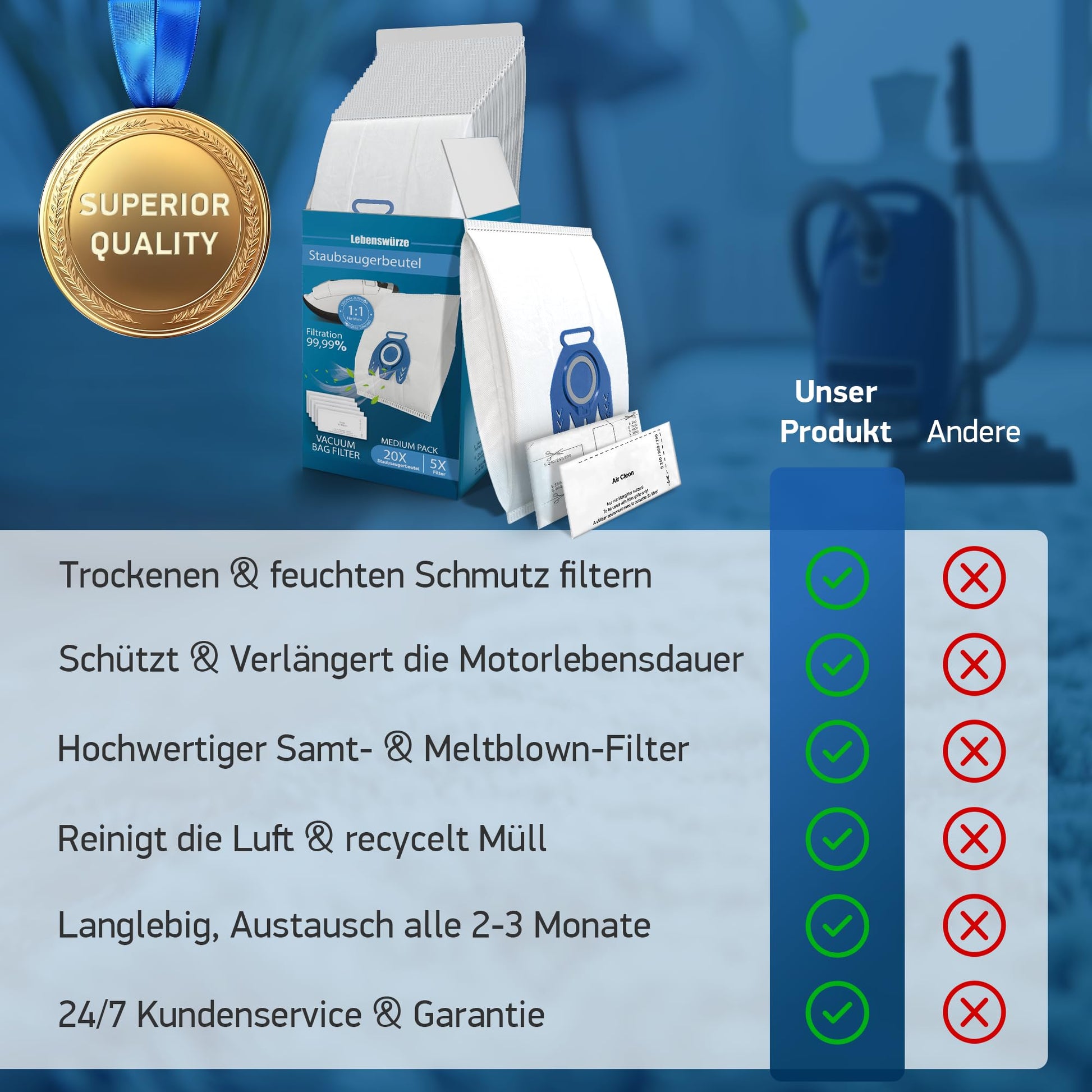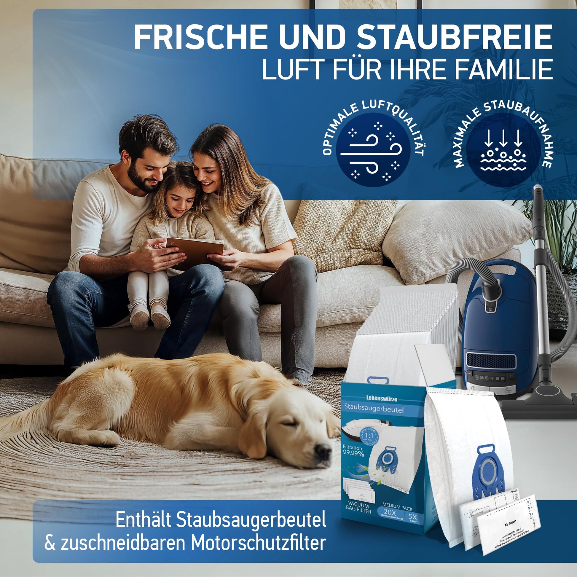 20 bags Compatible with Miele vacuum cleaners Complete C3/Complete C2/Classic C1/S2/S4/S5/S6/S8 3D Efficiency GN vacuum cleaner bags, with 5x motor protection & 5x exhaust filters, replaces 9917730