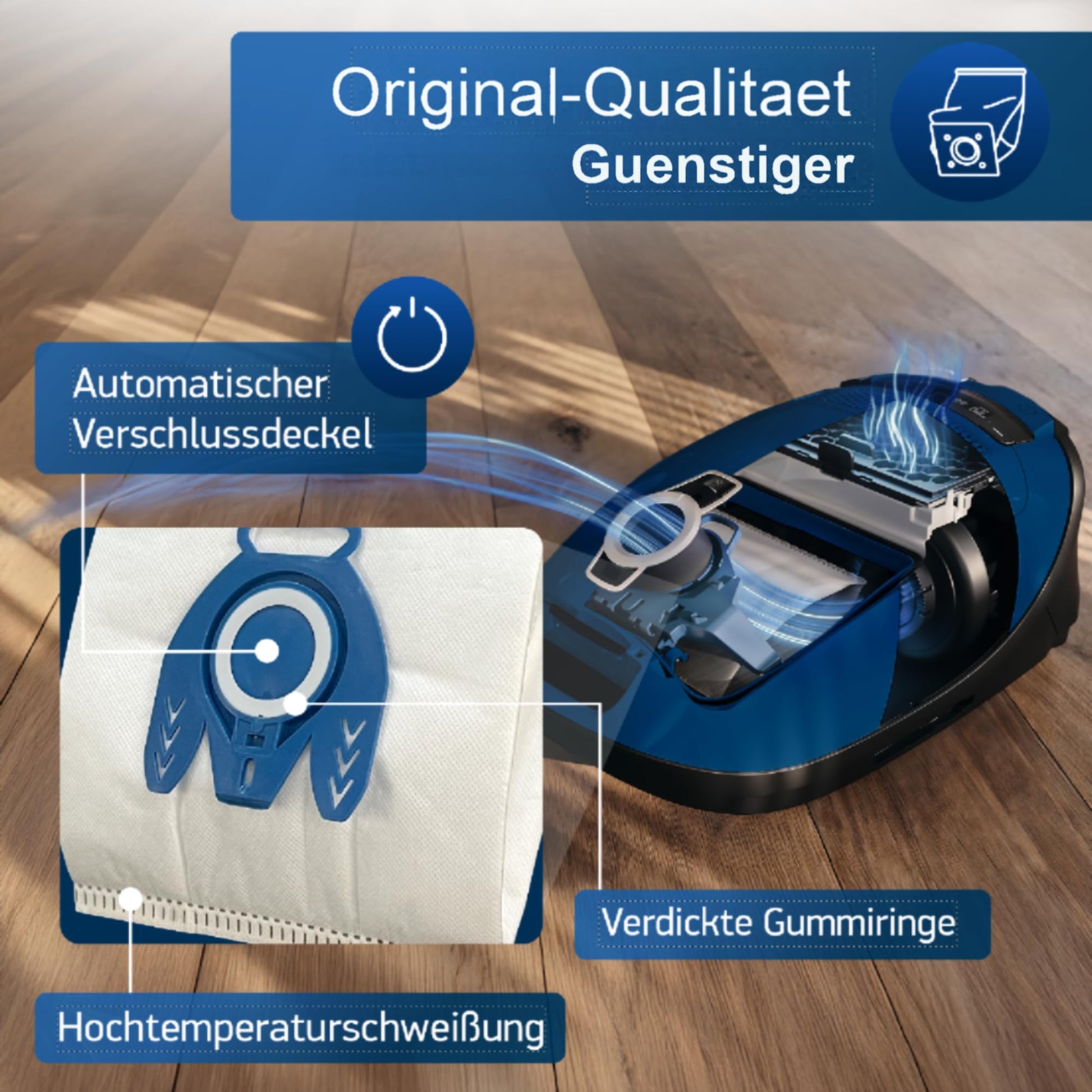 [""]"✅Replacement Original✅These vacuum cleaner bags are the perfect compatible with Miele Original bag 9917730. It is compatible with Miele Classic C1, Complete C2, Complete C3, S400i - S456i, S600 - S658, S800 - S858, S2 (S2000 - S2999), S5 (S5000 - S5999), S8 (S8000 - S89999), S8340, S8360 series vacuum cleaner bags. For a cost-effective and reliable alternative to original bags."✅Stable&Robust✅The sturdy plastic cover and the additionally attached rubber ring ensure a secure fit and prevent moisture and dirt from entering the device."✅Good Multi-purpose✅The vacuum bag has been treated with ultrasonic high-temperature hot welding and has a certain load-bearing capacity. It is also suitable for coarse dirt such as construction waste."✅Highest Filtration Performance✅Made of durable, 5-layer fleece material that reliably captures even the smallest dust particles and allergens, improving the air quality in your home. The vacuum bag ensures optimal suction performance and prevents dust from escaping."✅Hygienic Disposal✅The dust bag can be easily attached and removed. The stable construction and the automatic closure mechanism ensure that you can empty the bag hygienically without spreading dust – ideal for allergy sufferers and sensitive households."✅Hygienic Closure✅The Miele-compatible vacuum cleaner bag features an automatic dust cover that securely seals the bag when removed, preventing dust particles from entering the room air. Ideal for hygienic cleaning and easy replacement without contact with dirt."✅Includes Motor & Exhaust Filters✅The set includes a high-quality motor and exhaust filter, which additionally protects against dust and dirt accumulation, extending the life of your vacuum cleaner. The filter can be cut to size as needed to fit perfectly into your device."✅Beautiful Box✅Our packaging boxes are beautifully designed and securely glued with medical adhesive, and can be used to store other products. Installation instructions and product guides are printed on the box. If you have any questions, you can contact us."[""]