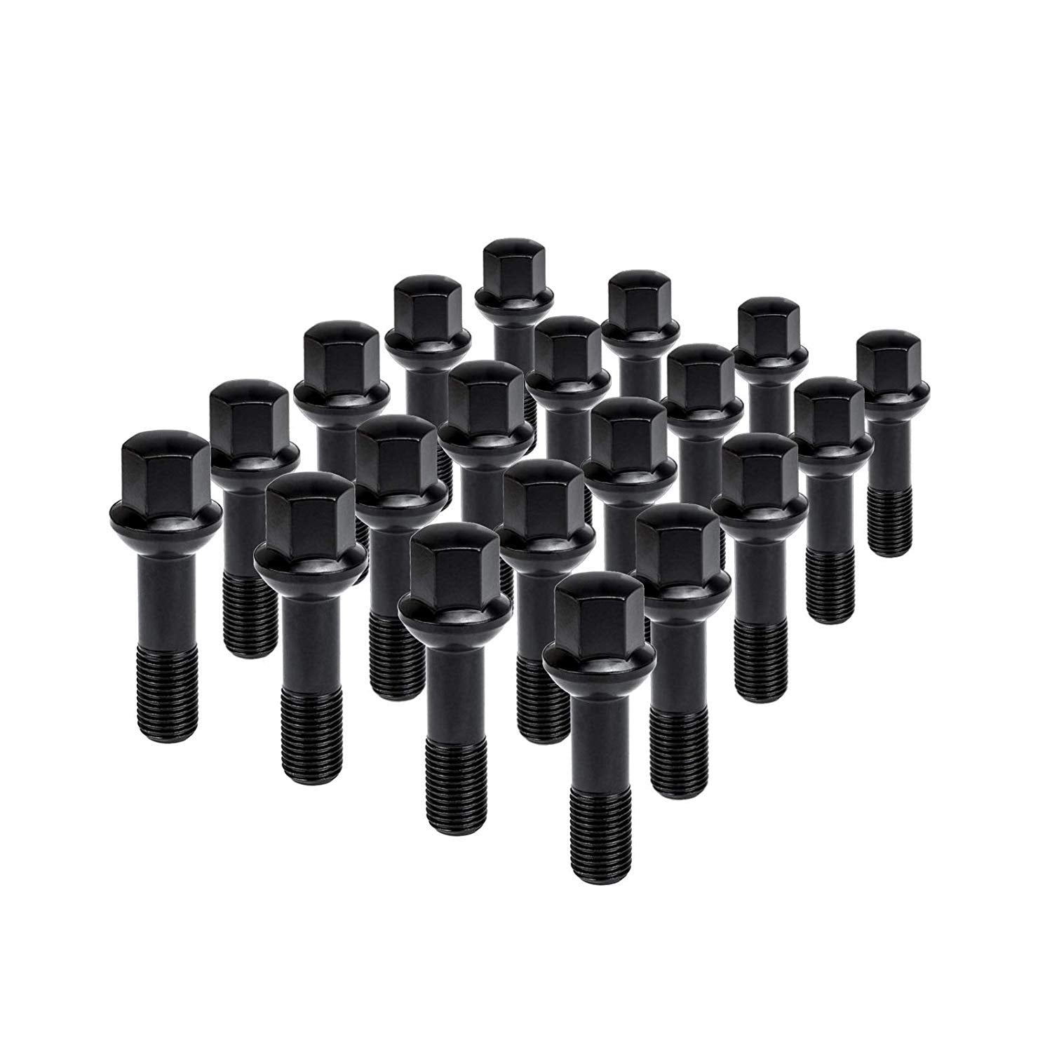 20 wheel bolts M14x1.5x45mm BLACK ball seat for R14 alloy wheels.