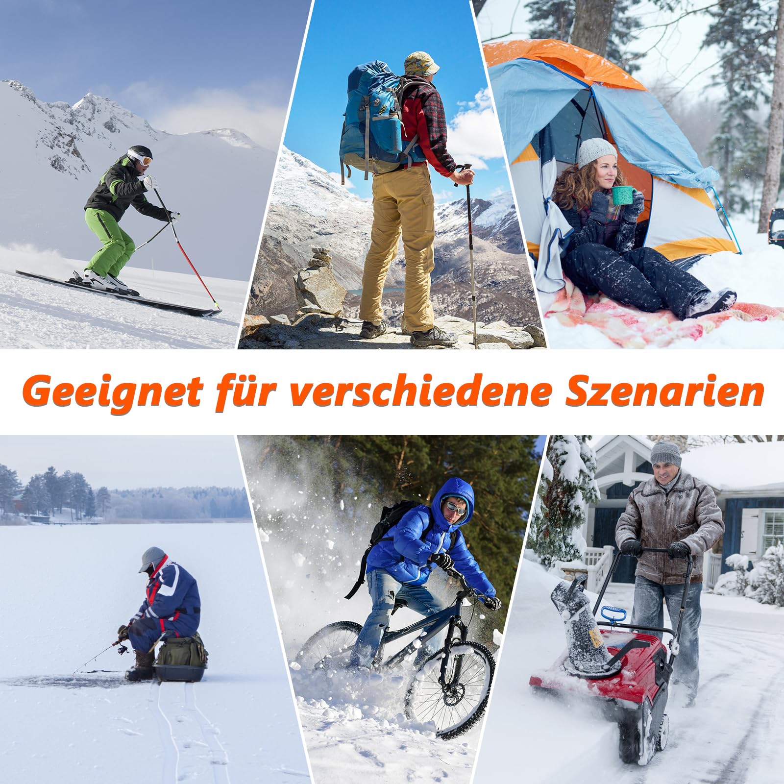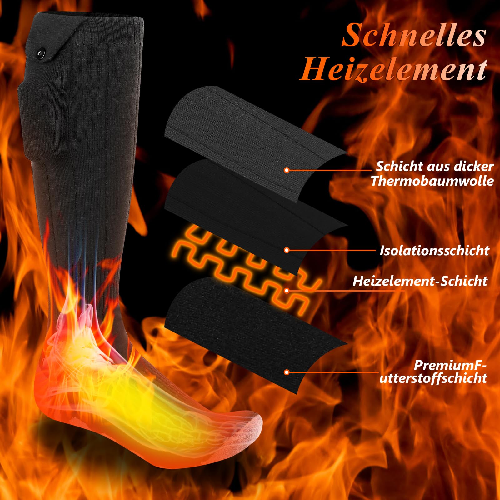 "BRINGT IHNEN WINTERLICHE WÄRME: Heated socks are made of highly stretchable core yarn fabric on the outer layer and short wool on the inner layer. Moisture absorption, breathability, high elasticity, and no static electricity ensure your comfort while wearing. They are an ideal gift for people suffering from arthritic feet and cold joints.","HÄLT SIE BIS ZU 12 STUNDEN WARM: Equipped with 2 X 5V/6000mAh rechargeable lithium polymer batteries, which have a higher capacity than other batteries on the market, the heated socks can work for 6-12 hours, keeping your feet warm all day long. (Note: Please charge in advance in sub-zero temperatures)","4 EINSTELLBARE TEMPERATUR: Ferdiiz battery heated socks with 4 temperature levels, self-heating socks with a maximum temperature of 158℉/70℃ (4 lights on), medium-high 140℉/60℃ (3 lights on), medium 120℉/50℃ (2 lights on), and low 113℉/45℃ (1 light on). In emergencies (such as after winter swimming), use high temperature first, then switch to low temperature","FREIE HÄNDE: To prevent freezing your hands while hand washing and your heated socks from wrinkling and pilling, place the battery heated socks in the Ferdiiz mesh laundry bag in the washing machine. Note: Remove the batteries before washing and thoroughly dry the cable before use","VIELSEITIGER EINSATZ UND BESTES GESCHENK: Ferdiiz heated socks have buckles to prevent batteries from being ejected during exercise, ideal for hunting, hiking, riding, fishing, cycling, driving, running, camping, skiing, trekking, sleeping, and more. The heated socks are also ideal gifts for parents, friends, family, and seniors"