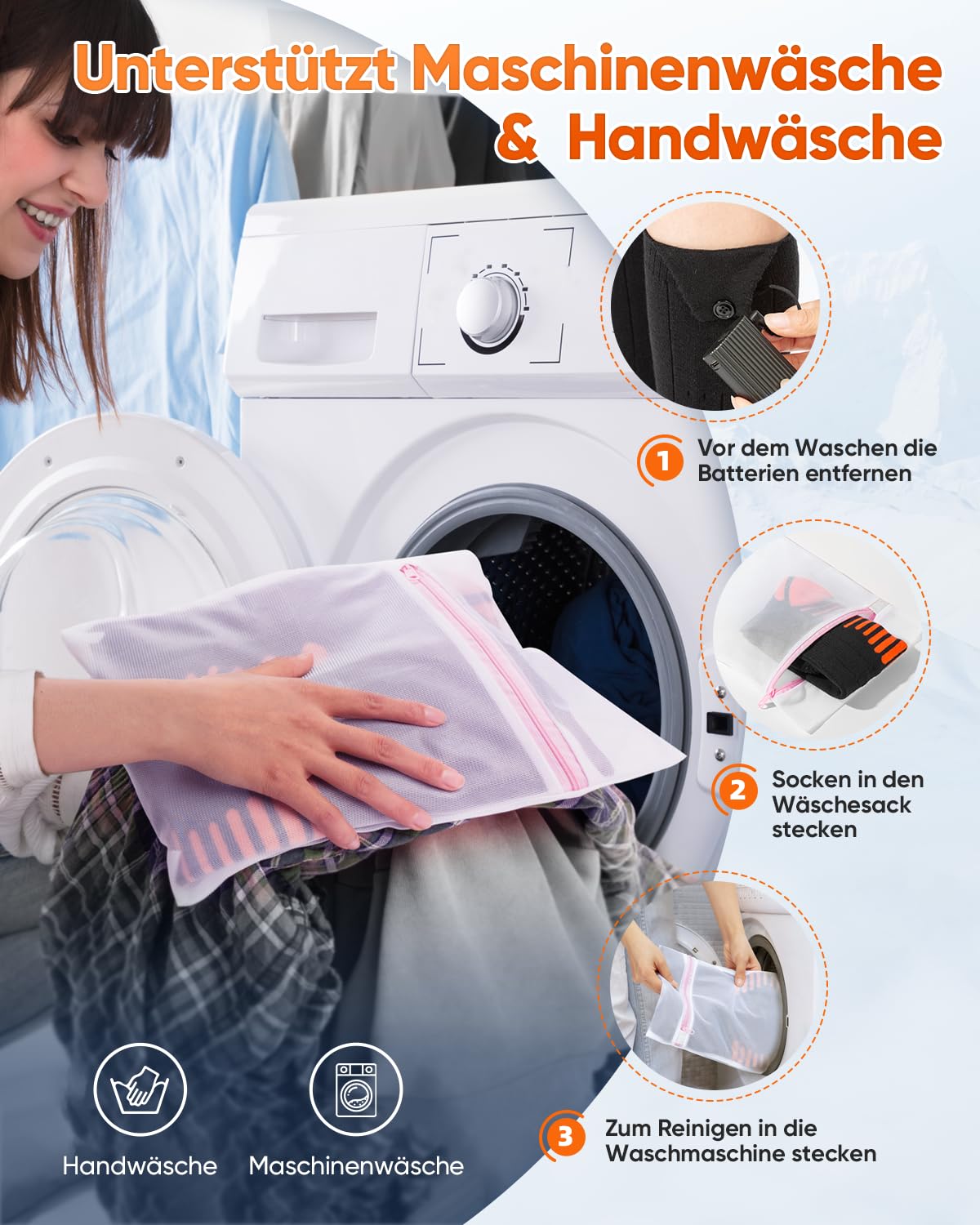 ["APP Portable Control: There are two ways to control the heated socks, you can use the APP remote control or the battery button control. Scan the QR code on the manual or download the app from the store to easily set the temperature (accurate to 0.1) without bending down or taking off your shoes. You can also easily achieve intelligent timing and individual control of the left and right socks through the APP.","3 Intelligent Temperature Settings: The heated socks have three temperature settings, simply press the temperature setting button briefly or use the APP to easily adjust the comfortable temperature to keep your feet warm and comfortable. You can set the electric socks to low temperature (45℃-55℃/113℉-131℉ 9-12H), medium temperature (55℃-60℃/131℉-140℉ 7-9 H), or high temperature (60℃-65℃/140℉-149℉ 5-7H).","360° Omni-directional Heat: Heated socks are designed with 5 layers of fabric, embedded with new updated nano-fiber heating wires, providing a larger and more even heating area, 360-degree omni-directional around the foot, will not burn your feet, comfortable to wear, and promote circulation. Ideal for people with poor circulation, chronically cold feet, arthritis, or Raynaud's syndrome.","More Powerful Battery: 5000mAh/5V battery power brings faster heating speed for the rechargeable heated socks, better performance in cold environments compared to 3.7V batteries on the market. Can work continuously for up to 12 hours (max) to keep your feet warm all day long. The lightweight battery design will not burden you even during sports, and the double-sided Type-C charger charges both socks at the same time, saving you time.","High-Quality Warm Fabric: The Heated Socks are made of high-quality cotton and elastane material, combined with ergonomic, comfortable, warm, breathable, sweat, elastic, and thick fabric wrap around the feet in all directions without feeling foreign. In addition, the washable heated socks support hand washing and machine washing (Tip: Please remove the batteries before washing, machine wash must be placed in a laundry bag).","Enjoy Winter Warmth & Best Gift: These Electric Heated Socks are designed to withstand various environments, you can enjoy all kinds of indoor and outdoor activities in winter, such as skiing, camping, hunting, hiking, cycling, snow shoveling, and office work, etc. Let your feet say goodbye to the cold! Warm heated socks are the perfect Christmas gift for your family, loved ones, and friends, let your loved ones have a warm winter.","Professional Customer Support: Our goal is to provide high-quality products. We have a strong R&D team, from R&D to production, we have conducted more than 5,000 tests and inspections to ensure that you receive high-quality products. If you have any problems when using the product, please feel free to inform us if you have any problems with the product."]